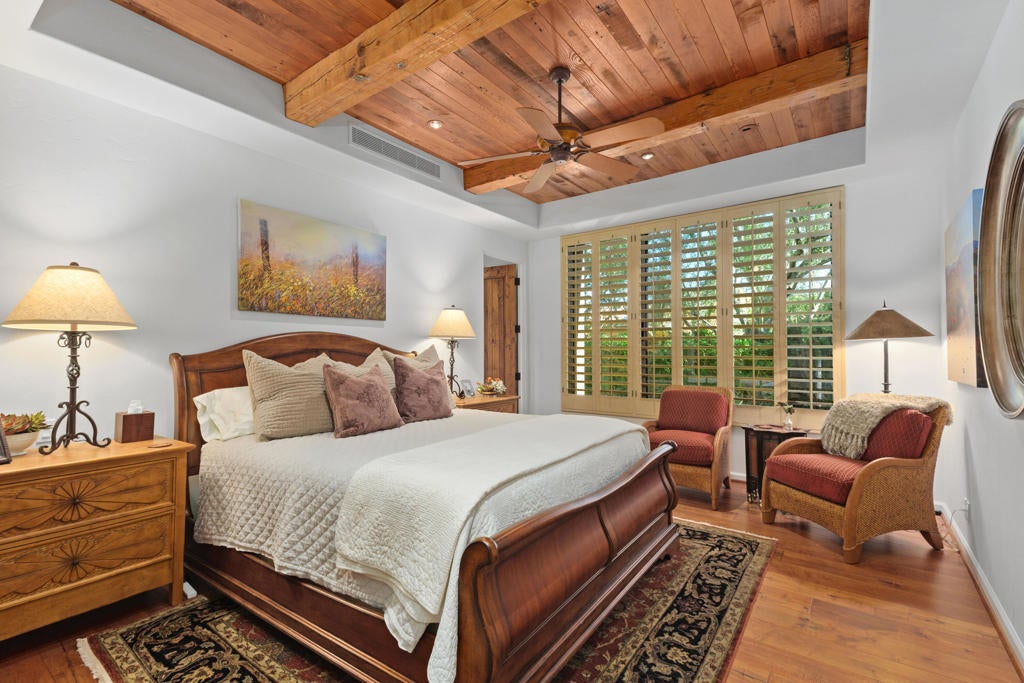 Breakfast Bar, Separate/Formal Dining Room, High Ceilings, Open Floorplan, Recessed Lighting, Primary Suite, Walk-In Closet(s), Beamed Ceilings, Crown Molding