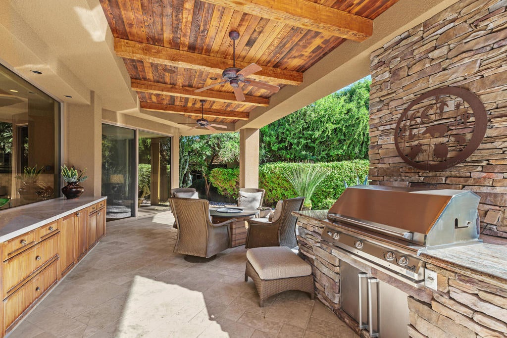 Experience Desert Elegance at Its FinestDiscover this stunning desert retreat, perfectly framed by the dramatic beauty of the surrounding mountains. Thoughtfully landscaped grounds and a tranquil water feature in the entry courtyard set the tone for serenity in this 3,749 sq. ft. residence. Featuring 3 bedrooms, 3A1/2 baths, and a versatile office that easily converts to a fourth bedroom, this home offers both flexibility and comfort.The newly renovated gourmet kitchen and open-concept great room make everyday living and entertaining a true delight. Expansive floor-to-ceiling glass doors seamlessly blend indoor and outdoor spaces, opening to a resort-style patio complete with built-in BBQ, sparkling pool, and spaa"all overlooking the golf course and majestic Santa Rosa Mountains.Impeccable quality and warmth are evident throughout, complemented by new furnishings in the main living areas. Nestled within the natural beauty of The Reserve, this exceptional home offers an unmatched lifestyle.The Reserve Club features world-class amenities, including a Tom Weiskopf-Jay Morrish-designed championship golf course with three Trophy Holes and a double-ended practice range. The Club Village offers fine and casual dining at the Clubhouse and Lakehouse, a state-of-the-art Fitness Center with cardio and exercise rooms, a Jr. Olympic-size pool, Tennis and Pickleball courts, and a premier Golf Shop.