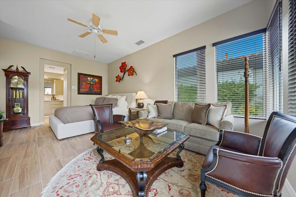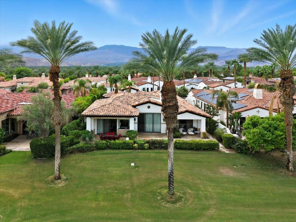 Nestled along the scenic second hole of Toscana's South Course, this exquisite Italianate-style residence redefines sophisticated desert living. With the unique charm of a courtyard pool, this home invites you to immerse yourself in the tranquil ambiance of outdoor leisure.The expansive great room is bathed in natural light, featuring lofty ceilings and a stunning fireplace that exudes warmth. Dual sliders effortlessly bridge the gap between indoor elegance and outdoor relaxation, showcasing enchanting views of the lush golf course and surrounding landscape.At the heart of this artistic haven lies the gourmet kitchen, appointed with high-end appliances paired with custom cabinetry. The generous counter space and inviting breakfast bar make it an ideal setting for casual dining or those leisurely mornings.The serene primary suite serves as your personal sanctuary, offering breathtaking views and convenient access to the serene outdoor space. The en-suite bath is a luxurious retreat, featuring a spacious walk-in shower and dual vanities.Please note, the furnishings depicted in the photos are not currently in the home or included; this home is being sold unfurnished. With its unrivaled elegance and prime location, this remarkable property is a true oasis at Toscana Country Club, where luxury meets desert serenity.