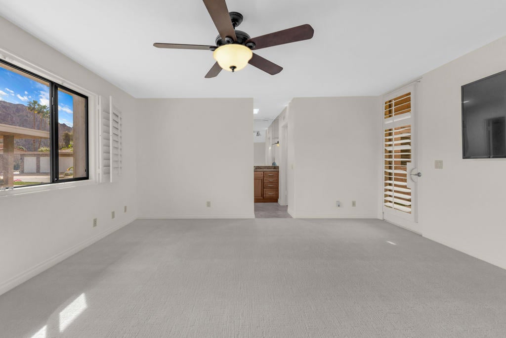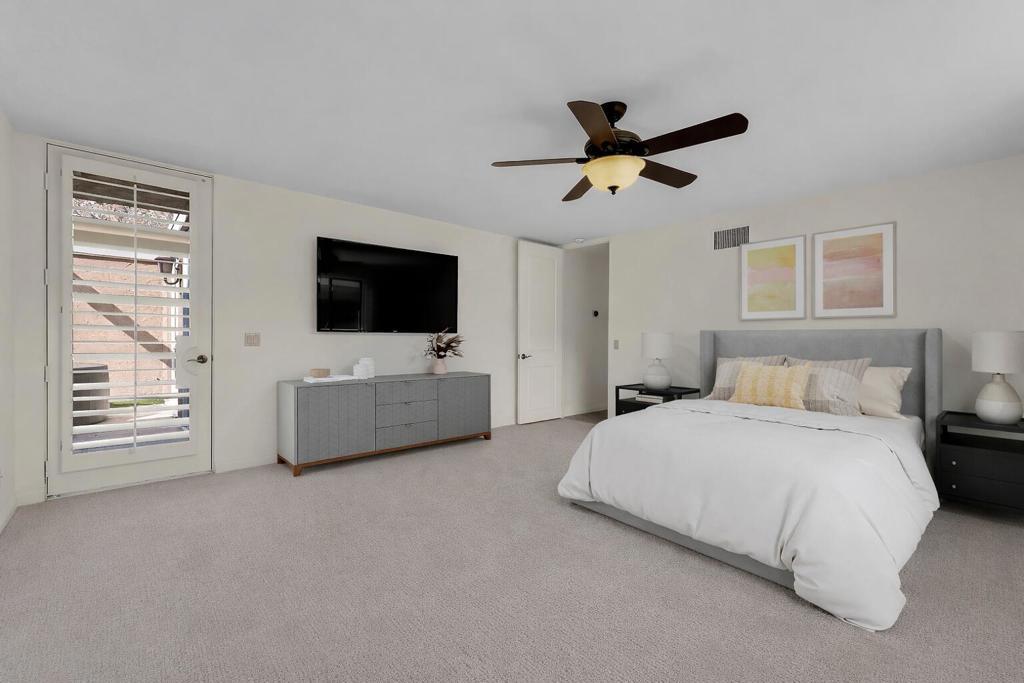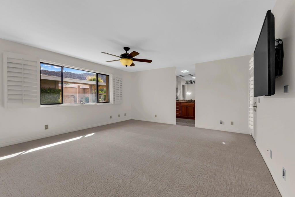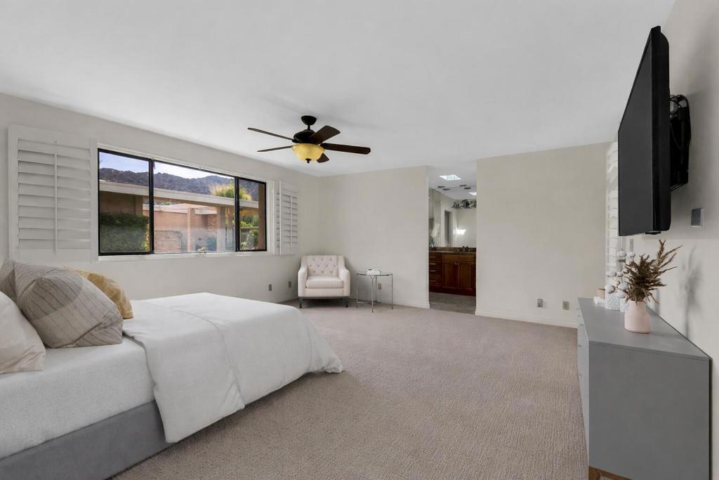 *NEW PRICE* - $51K Price Improvement!This move-in-ready condo in Indian Wells Country Club has been freshly painted throughout the interior including the garage, with high ceilings enhancing the sense of space and openness. Inside soaring ceilings, refined soffit details and recessed lighting highlight a stunning great room that flows seamlessly into the kitchen and breakfast bar, perfect for entertaining or relaxed gatherings. New light-toned flooring in the bedrooms add warmth and a fresh feel. Virtually staged photos for bedrooms are included to help showcase the scale, layout and design possibilities of the home. Virtual images are for illustrative purposes only.The guest suite offers generous size, comfort, and privacy, with peekaboo mountain views. The primary suite provides expansive space for a private retreat, sitting area, or workspace. Great walk-in closets with bathrooms brighten up by skylights. Enjoy true indoor-outdoor living with a private courtyard featuring a hot tub. The back patio is framed by a short privacy wall that opens to lush greenbelt, creating a peaceful and open setting. Enjoy the breathtaking mountain views, manicured grounds, golf courses, and resort-tyle amenities that define the lifestyle at Indian Wells Country Club.