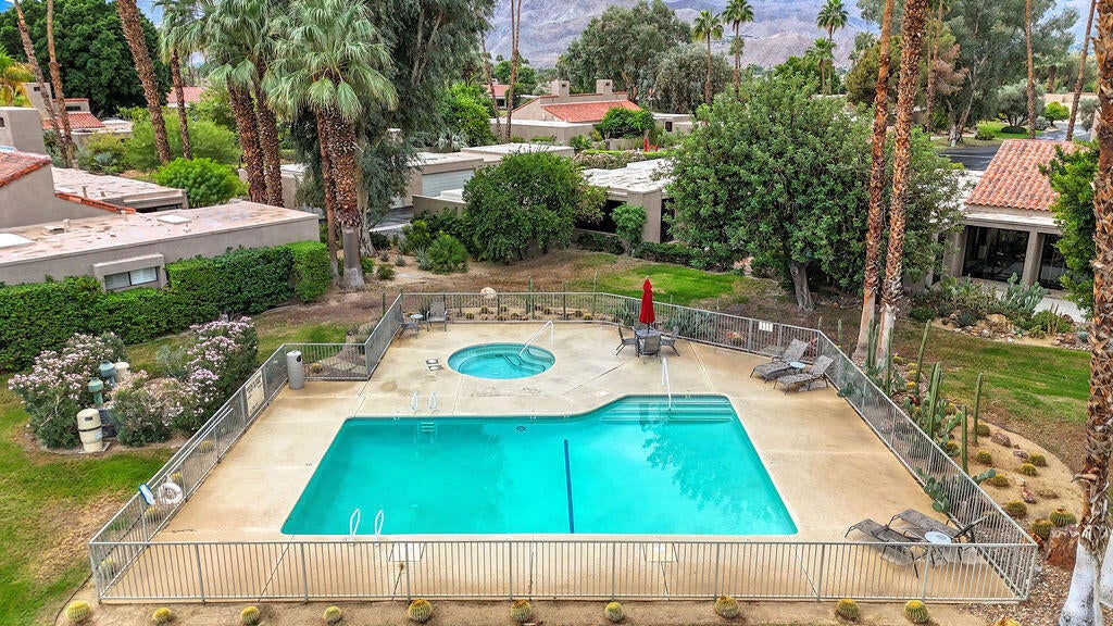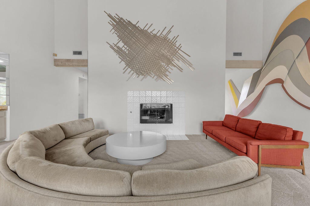 Tucked within the serene grounds of Mission Hills Country Club, this 1,984 sq ft residence offers a quietly captivating blend of water, light, and architectural warmth. Just a few steps from the sparkling pool, the home rests along a peaceful lake with the golf course unfolding in the distance--an ever-present backdrop that shapes daily life with calm and beauty.The living room rises under vaulted ceilings accented with exposed wood, creating a sense of openness anchored by a classic fireplace. Sunlight moves easily through the space, drawing attention to the views and giving the home an easy, unforced elegance.With two bedrooms and two baths, the layout is thoughtfully balanced--comfortable enough for full-time living, effortless enough for a lock-and-leave getaway. A private garage adds convenience, while the community's lush surroundings and resort amenities enhance the feeling of escape.In this lakeside setting, the pace shifts, the days feel lighter, and the desert reveals a quieter side of itself.