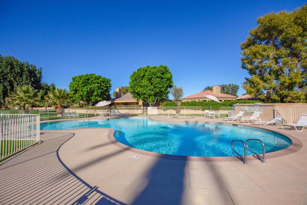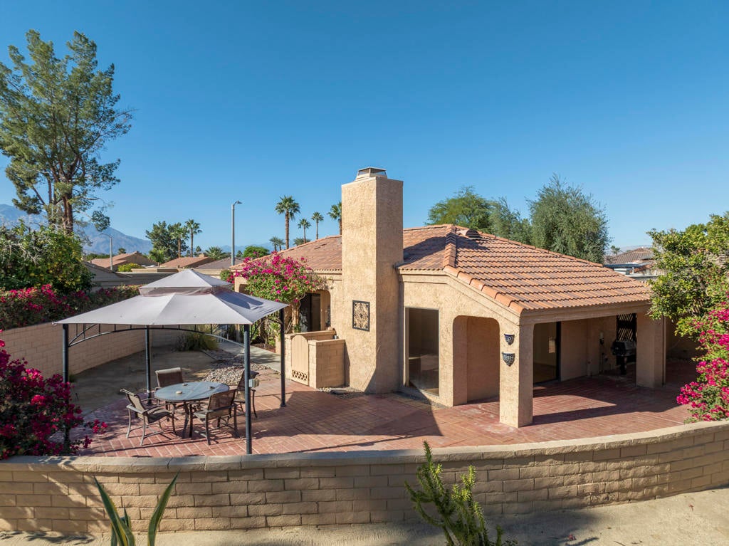 Hidden Palms is one of the best-kept secrets in Palm Desert, featuring a fantastic location. This gated community offers condos that resemble small houses, complete with nice yards, two-car garages, and all the amenities of a resort. This particular unit is detached, ensuring extra privacy. With 3 bedrooms and 2 bathrooms spanning 1,584 square feet, this home features a cozy fireplace and a sunlit atrium. The backyard overlooks a beautifully landscaped area and a walking path that weaves through the development. Residents can enjoy four pools/spas, five tennis/pickleball courts, and a central lake that adds a luxurious touch to the community. Additionally, there is a two-car garage and an enclosed area for the washer and dryer.Seller offers this property in AS-Is condition.