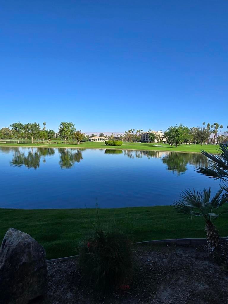 Terrific condo with breathtaking views of the mountains, green belt, golf course and lakes. The patio is your haven spot to enjoy the desert sunsets. The state of the art kitchen is equipped with lots of cabinets and is ideal for entertaining. Main bedroom is spaces with en-suite bathroom with tub. Second bedroom, as well very spaces. This gated community is conveniently located near the Eisenhower Hospital, 3 minutes drive to all the shopping's. The CC offers tennis, Clubhouse with restaurant in winter, golf, gym, and the underground parking space with small storage. Energy efficient system shared with other homeowners.