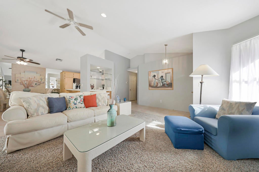 $245,000 FHA assumable loan at 2.88%(25 years remaining with monthly payments of $1,666 including PITI).This home is what you have been looking for.............2 bedroom & 3 baths at a great price.Short term rentals are OK with 30 day minimum stay.Everything stays.....Turnkey furnished.Private patio off master bedroom.Large living room with high vaulted ceilings.Quality furniture throughout.Walk-in pantry.Golf.......tennis.......pickleball.......18 swimming pools & Chef's Choice dining all available to you.