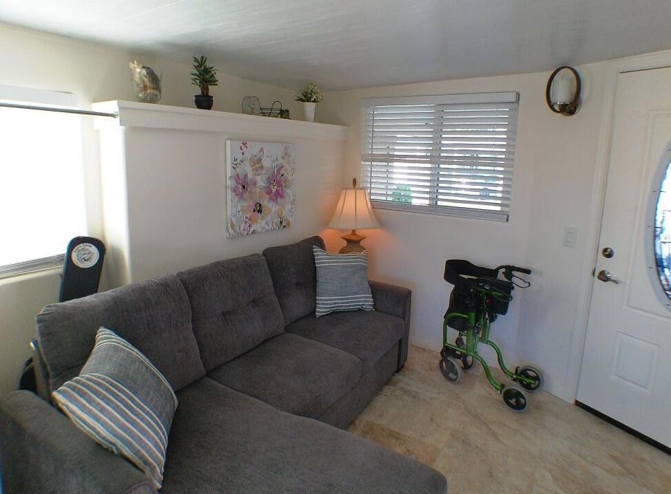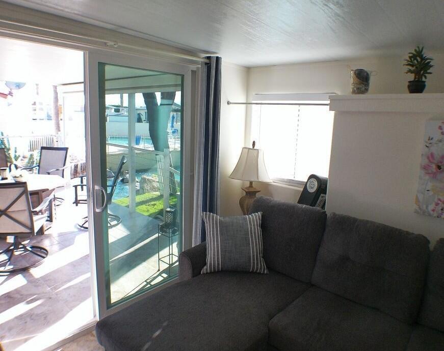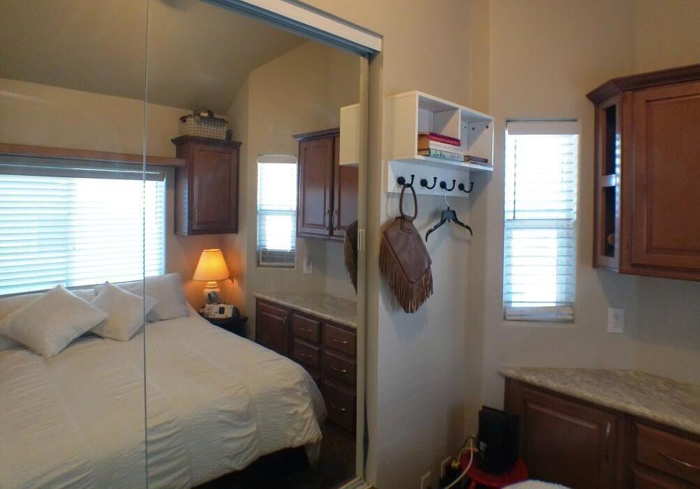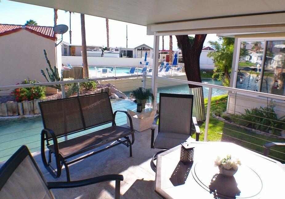 Cavco Park Model with a Loft overlooking Sat ''A'' with water everywhere in the back. You overlook the pool/spa area with Mtns in the Background. Covered Deck with BBQ area below. The loft is extra area for a bed for guests or family, or you can use for extra storage. The owners added a small CA Room for guests to sleep or watch TV. This room is off the patio in the back. Great bedroom with Queen bed and lots of cupboard space. Bathroom offers a nice shower. Enjoy sitting on the Back Patio overlooking the pond and Sat ''A'' pool with outstanding sunsets. Hurray don't miss the opportunity to own this unit.