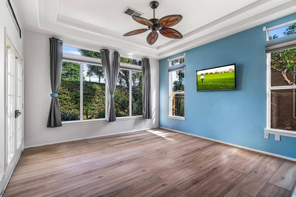 REMODELED, Move-in ready and close to the clubhouse! This 3 bedroom, 2 bath home has an open design floorplan and NEW custom redesigned/remodeled kitchen with new cabinetry, quartzite slab counters, decorative tile backsplash, stainless steel appliances and built-in wine fridge. The primary bedroom also has a remodeled custom tiled shower with dual vanities, large walk-in closet and double French doors to your private yard with covered patio. Additional upgrades include a courtyard entry, dramatic leaded glass entry door, LED recessed lighting, crown molding, vinyl flooring with tall baseboards, rain glass bathroom windows and new hardware throughout. Heritage Palms is a premier adult community featuring an 18 hole championship golf course, pickleball & tennis courts, indoor & outdoor pools, fitness center, grill room, card rooms, billiards room, social clubs and more.