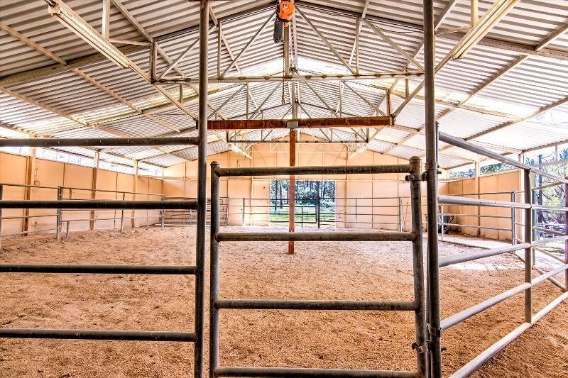 This 25+ Acre Mountain Equestrian Ranch sits above Palm Desert and Temecula Valley bordering National Forest. It boasts a 10 Stall Barn with attached Round Pen. 5 Lush, Fenced and Cross-Fenced Pastures with a Seasonal Creek, Mare Motel and Hay Barn makes for Happy Horses. There is an RV/Horse Trailer Garage, a Three Car Garage, Two Car Garage, the Workshop and more. The Main 5,000 sq. ft. 4 Bedroom, 4 Bath Residence offers a stunning Formal Living Room with a vaulted beam ceiling, and a wall of windows. The Country Kitchen is a chef's delight. Additionally, there is a 1 Bedroom Apartment above the 3 Car Garage and a Cozy 2 Bedroom Cabin. Come Steal this DIAMOND IN THE ROUGH!!