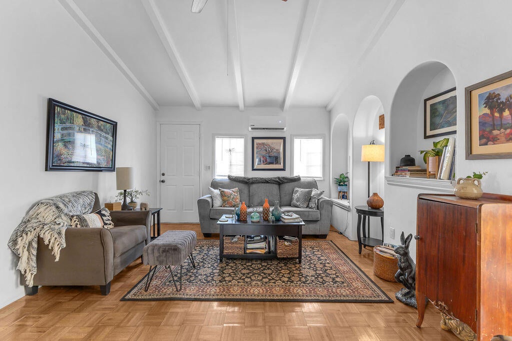 Seller says sell it! Major Price Reductions- means a great deal for you! Near Araby hiking trail! This spacious double-wide home--with thoughtful additions creating a true triple-wide feel--offers charm, character, and incredible potential. The floor plan includes a formal entryway, large sunroom, den, and an extra bedroom, providing 3 bedrooms plus a versatile office space to accommodate a variety of lifestyles.Inside, you'll find beautiful parquet floors, custom bookcases, and a classic galley-style kitchen that adds warmth and personality. The dedicated laundry room is generously sized and offers enough space to add an additional bathroom if desired. The expansive sunroom is ideal for relaxing, entertaining, or taking in the peaceful surroundings.Located in Horizon Village Park (no age restrictions), this home sits just beneath the iconic Bob Hope estate in the scenic Palm Springs mountains, offering a serene backdrop while remaining close to shopping, dining, and everyday conveniences.While the property is ready for some updates, the price reflects this and presents a fantastic opportunity for buyers looking to customize their dream home. Additional features include a storage shed and a 1-car garage for added functionality. Park is in the process of metering out each residents gas and electricity set to be done by April 2026.