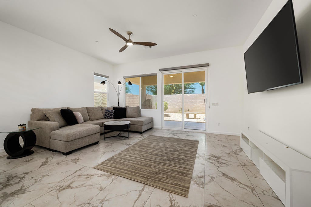 *** BRING ALL OFFERS*** SELLER SAYS SELL*** Welcome to 43553 Treviso Drive at Four Seasons Terra Lago -- Award-Winning Resort-Style Living!This beautifully upgraded home blends comfort, efficiency, and style with all the perks in Indio's premier 55+ guard-gated community.Inside, the open-concept floor plan offers 2 spacious bedrooms, 2 bathrooms, and a versatile den ideal for a home office or guest retreat. A 2-car garage plus dedicated golf cart bay provides ample storage. The home has been enhanced with brand-new designer tile flooring, soaring ceilings, recessed lighting, and custom window treatments. The chef's kitchen is a true highlight, featuring granite countertops, white cabinetry with updated pulls, stainless steel appliances, a stool-height island with pendant lighting, and seamless flow into the dining and great room with direct patio access.The primary suite boasts abundant natural light, a walk-in closet, and a spa-like bath with dual vanities, a glass-enclosed shower, and refreshed fixtures. Additional upgrades include a finished laundry room with cabinets and utility sink, washer/dryer, and a tankless water heater. Outdoors, enjoy a covered patio extended with elegant pavers--perfect for entertaining or relaxing--with room to add a spa or water feature.At Four Seasons Terra Lago, resort-style amenities await. The 22,000 sq ft lodge features a state-of-the-art fitness center, full-service salon, yoga and aerobics studios, library, billiard room, ballroom, bistro, and both indoor and outdoor pools. Residents also enjoy tennis, pickleball, golf, and countless organized activities. Beyond the gates, you're just minutes from Acrisure Arena, world-class casinos, hiking, dining, and shopping, with easy freeway access to La Quinta, Palm Desert, and Palm Springs.Experience the ultimate in desert living with this rare opportunity--schedule your private tour today!