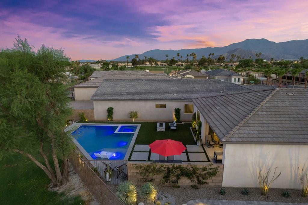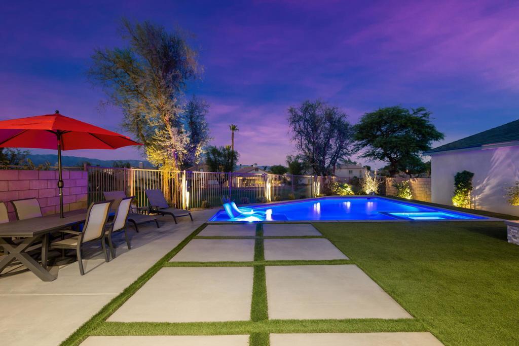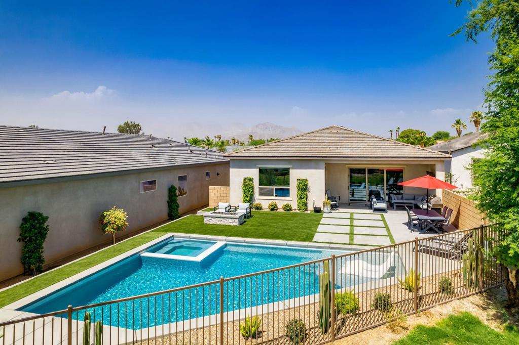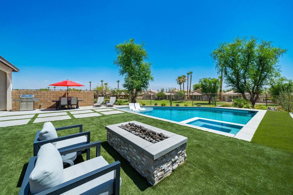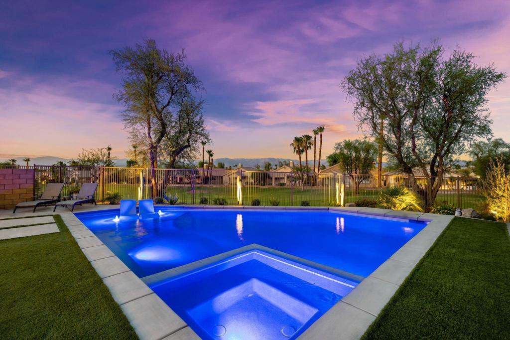 AVAILABLE: May - Oct 2026 for $4,000. This modern/contemporary home that has been tastefully decorated in every spacious room sits above the 2nd hole of the beautiful Big Rock Golf Course at Indian Springs. You will love the open concept living and dining spaces that continue onto the outdoor patio with large sectional and flat screen for viewing your favorite sporting events or TV shows. Additionally, the outdoor living area features a gas fireplace and a sparkling blue saltwater pool and spa with tanning shelf. Everything in this home is new and kept impeccably well by the owners and in between renters. All 3 bedrooms have king beds, private bathrooms and walk in closets. The home is fully stocked with everything you need in the kitchen to make a gourmet meal and the rest of the home was decorated very thoughtfully to make this the perfect home away from home, including 2 EV chargers! The pictures speak for themselves. This is a gem and you won't be disappointed!