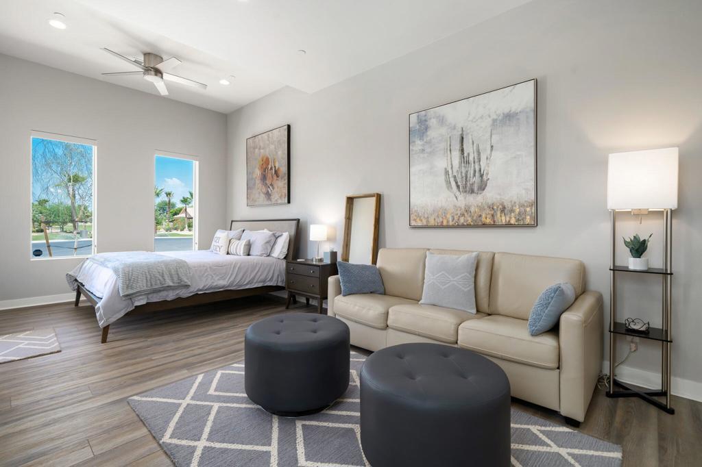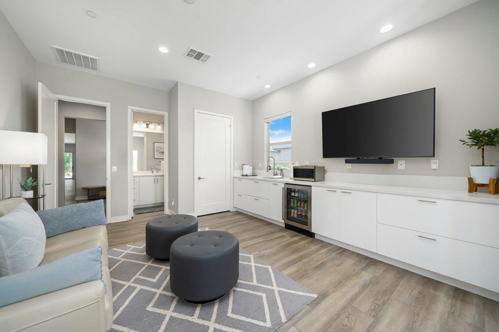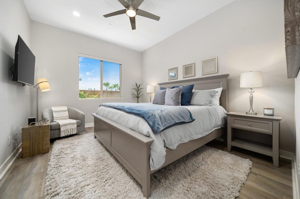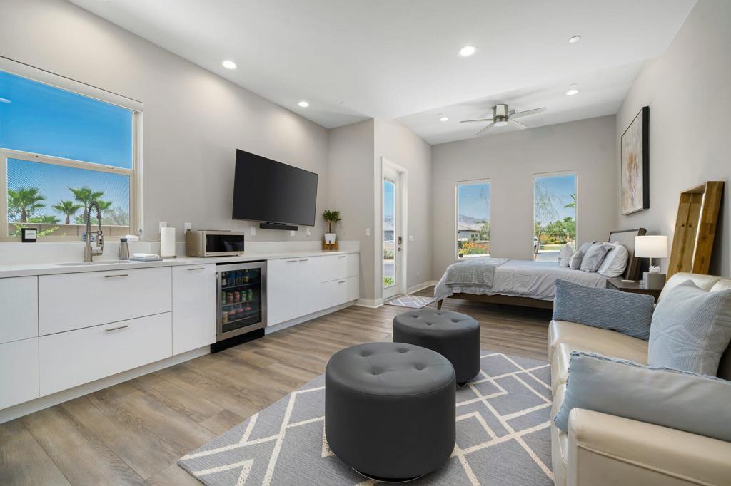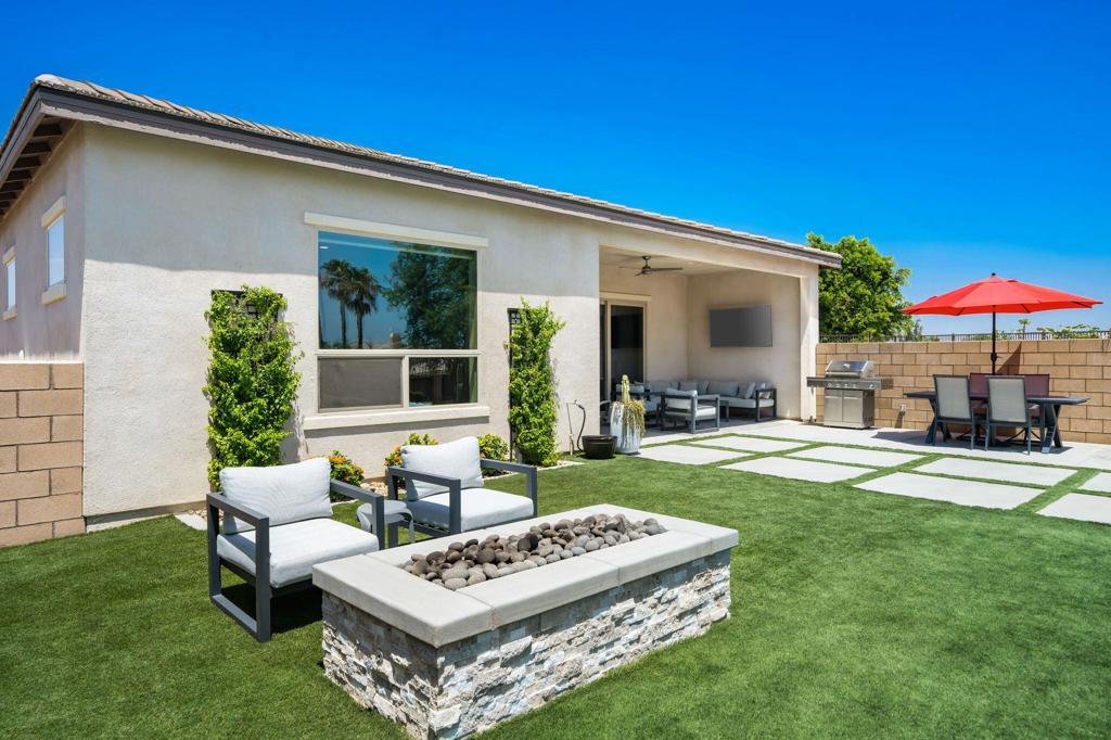 AVAILABLE: May - Oct 2026 for $4,000. This modern/contemporary home that has been tastefully decorated in every spacious room sits above the 2nd hole of the beautiful Big Rock Golf Course at Indian Springs. You will love the open concept living and dining spaces that continue onto the outdoor patio with large sectional and flat screen for viewing your favorite sporting events or TV shows. Additionally, the outdoor living area features a gas fireplace and a sparkling blue saltwater pool and spa with tanning shelf. Everything in this home is new and kept impeccably well by the owners and in between renters. All 3 bedrooms have king beds, private bathrooms and walk in closets. The home is fully stocked with everything you need in the kitchen to make a gourmet meal and the rest of the home was decorated very thoughtfully to make this the perfect home away from home, including 2 EV chargers! The pictures speak for themselves. This is a gem and you won't be disappointed!