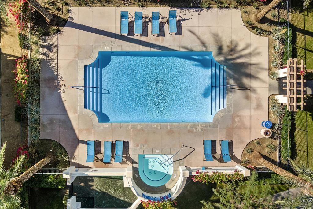 Pool and Mountain Views. Morning Sun from Both Balconies! New Paint. Exceptionally Clean. Upstairs 3BR/3BA Lock-Out Villa in the guard-gated community of Legacy Villas at La Quinta. Overlooks one of many salt-water pools & spas in the community. Enjoy your morning coffee or tea in the sun on one of two East-facing balconies. 3 gas-log fireplaces, 4 ceiling fans, and much much more. Offered Unfurnished, a blank canvas ready to welcome your inner Designer. Legacy Villas is an amenities-rich community with 12 salt-water pools, 11 spas, 19 fountains, and an 11,000+ sq. ft. Clubhouse featuring meeting rooms, a state-of-the-art fitness center, a date-palm hammock garden, and The Legacy Grille (open only to homeowners and guests). Note: Short-Term Rentals are allowed at Legacy Villas. This condo can be rented in its entirety, or as two units--a 2-BR Condo and a 1-BR Suite. So, your desert resort getaway can help pay for itself even while you are enjoying it. Come see why Legacy Villas is resort living at its Best!