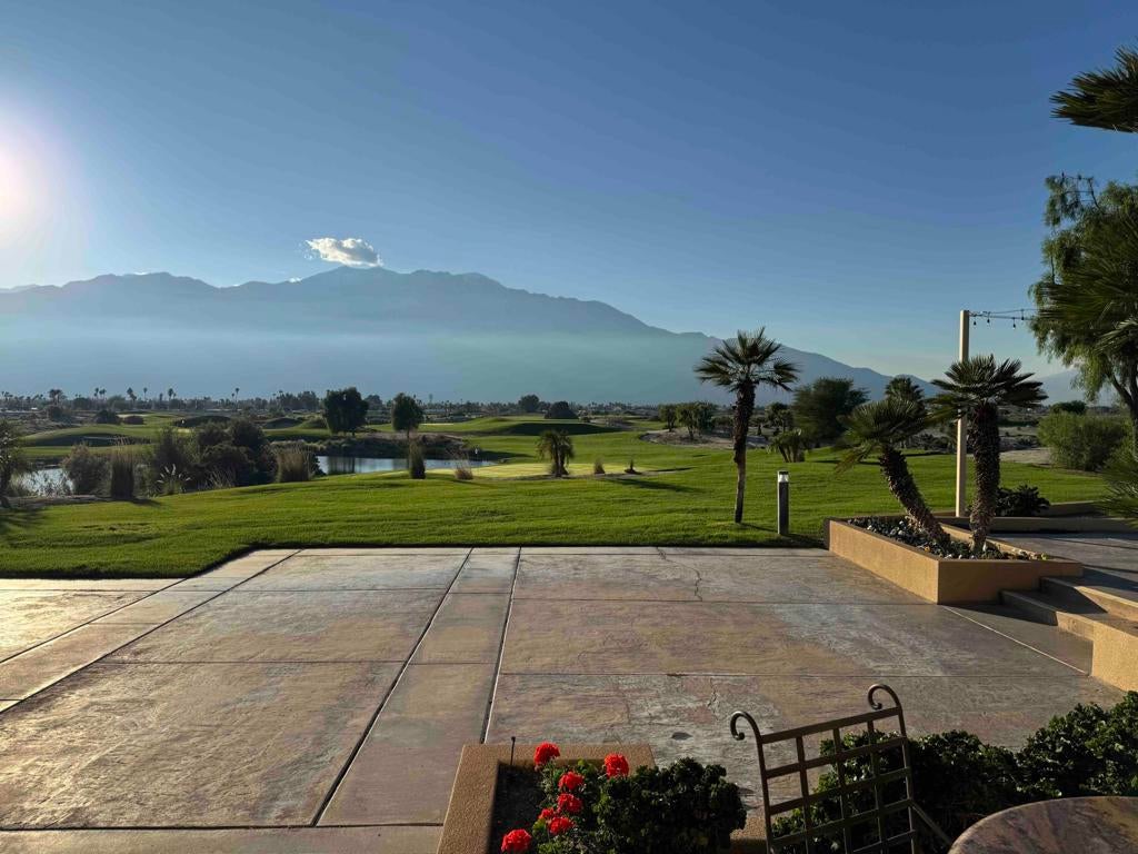This Beautifully maintained single-story end-unit condominium with 2 Bedrooms and 2 Bathrooms features direct access to its own private 2-car attached Garage. The warm, sophisticated interior features an open-concept Great Room, Dining Area and Kitchen with no partition walls. The Custom Window Coverings with Up-Down Shades provide abundant natural light while maintaining privacy. The Spacious Kitchen, with Granite Countertops and a large Breakfast Bar are adjacent to the Dining Area, which is great for entertaining. The South-facing Patio with mountain glimpses and a scenic desert walkway leading to the community's large pool and spa are a plus. The Primary Suite with Desert Landscaping views similar to those from the Patio, includes an ensuite bathroom with access to the spacious Primary Bedroom Closet. The Second Bedroom Suite features direct access to the Guest/Second Bath and its own private entrance which is ideal for guests. The large Laundry Room with side-by-side Washer and Dryer includes ample storage space as well. And again, the attached 2-Car Garage is ideal. This lovely Simplex Condominium Residence, with no one living above, is located adjacent to the Cimarron Country Club/Golf Course that features two championship courses, a Pro Shop, Dining with Breakfast and Lunch options plus its 'Happy Hour' from 3pm to 6pm daily. Lantana at Cimarron is located at the end of 30th Avenue, west of Landau Road in Cathedral City, CA. It shares the same gated entry as the Worldmark Time-Share Residences. For the 3D Tour, please contact the listing broker.