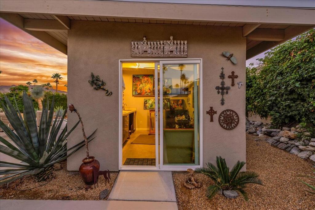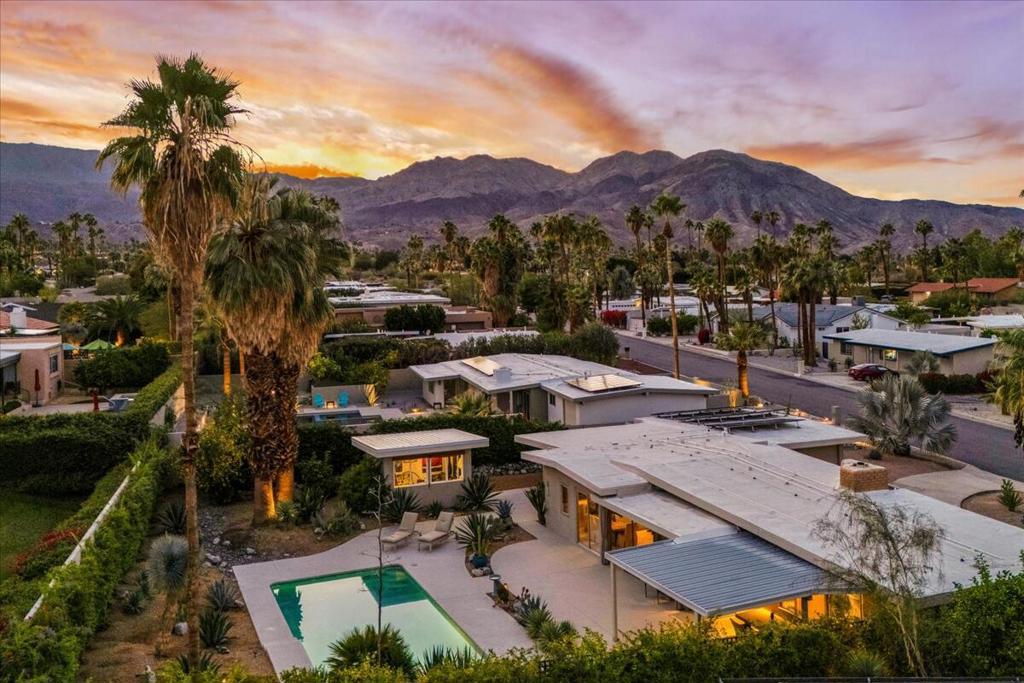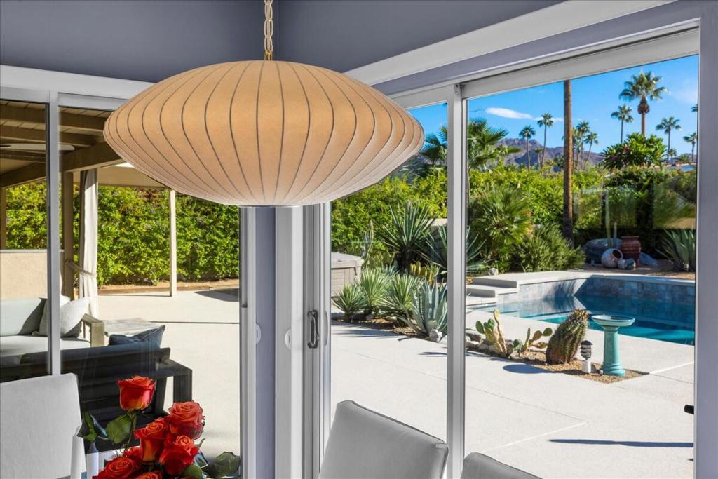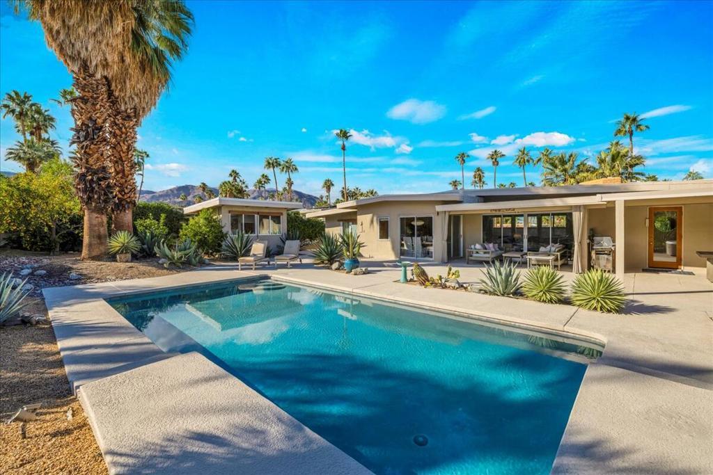 One-of-a-Kind- Dual Primary Suites- Mid Century, renovated, South facing pool home & spa, with detached art studio. Panoramic Mountain Views, with no unsightly power-lines to mar the views. Ideally located, nestled on quiet cul-de-sac in highly sought after Silver Spur Ranch, by Ironwood Park, a 14.83 acre city park. Remodeling includes: newer dual-pane windows; & doors throughout.Tile flooring; upgraded kitchen and bathrooms, pool, decking, outside shower & solar too. Near the Living Desert, and El Paseo shopping district and more. Ultimate privacy and views. New Solar lease, installed 2023, monthly payment $103.51 per month.