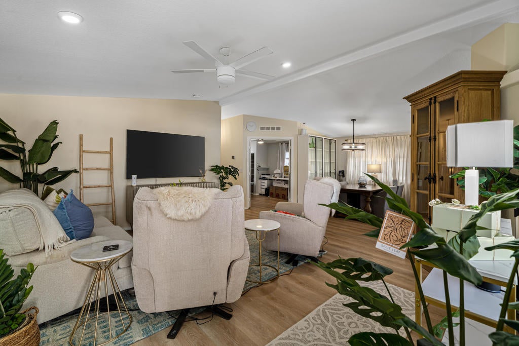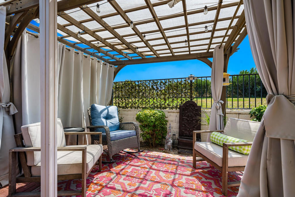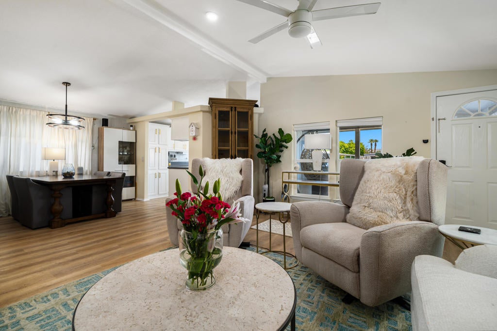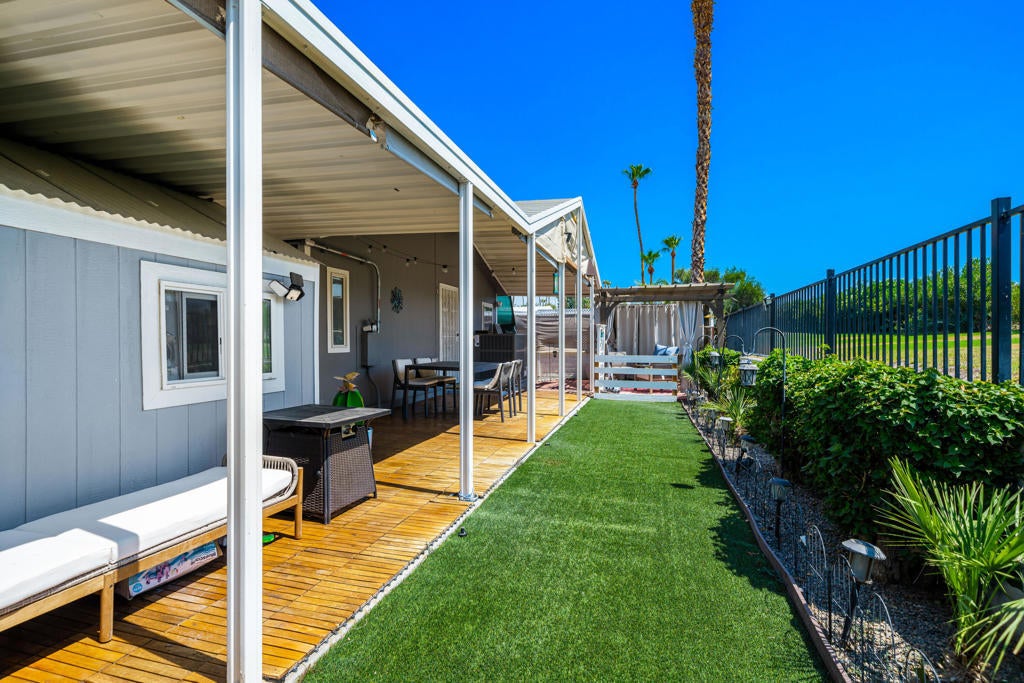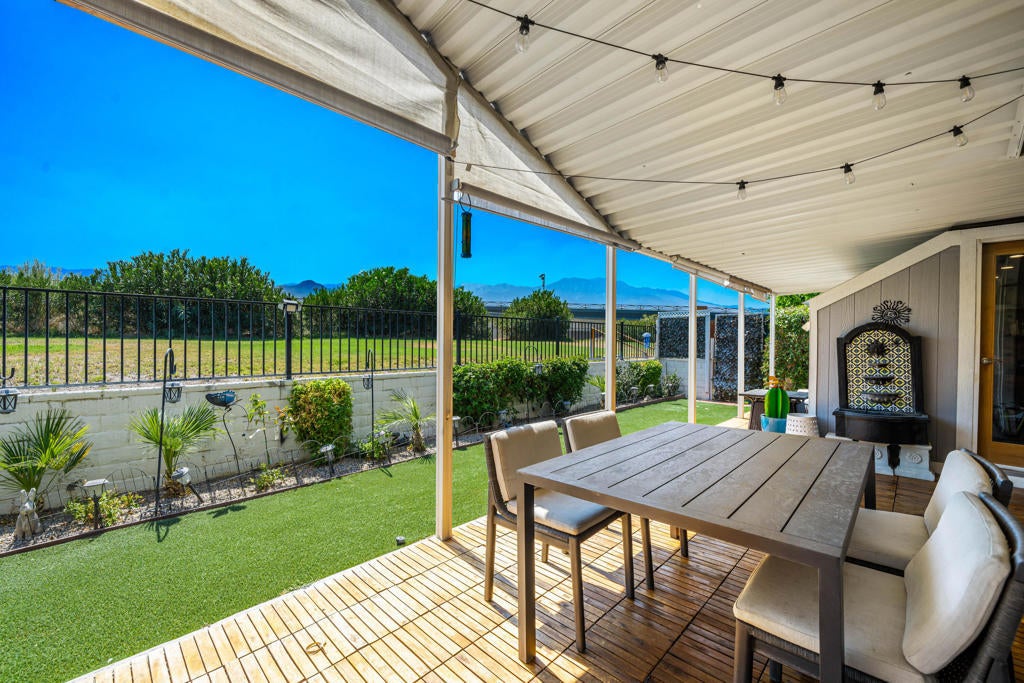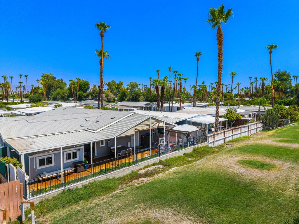 This spacious home offers 3 bedrooms, 2 baths, plus a versatile bonus room that's currently used as an office. With 1,512 sq. ft. of open-concept living, the home feels even larger thanks to its bright and airy layout.Built in 2004 and stylishly updated in 2023, the home features modern touches such as quartz countertops and fresh interior and exterior paint. A brand-new AC system was also recently installed, ensuring year-round comfort and efficiency.Enjoy a cozy front porch perfect for relaxing, or step into the large backyard with a covered patio and additional pergola designed for outdoor dining and entertaining. There's a bonus room off the patio that can be used as an office, lounge, or extra storage.Practical features include an attached 2-car garage with ample storage, a double-wide driveway (no tandem parking), and a pergola over the driveway to help keep cars cool in summer. Energy efficiency comes easy with leased solar panels and a backup power wall to keep your home running smoothly even during outages.Date Palm Country Club is a vibrant 55+ gated community in south Cathedral City, offering top-notch amenities including an 18-hole golf course, driving range, tennis and pickleball courts, multiple pools and spas, a clubhouse, fitness center, restaurant, pro shop, and a dog park.