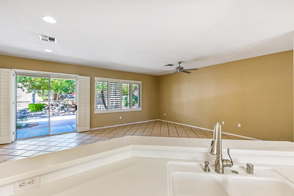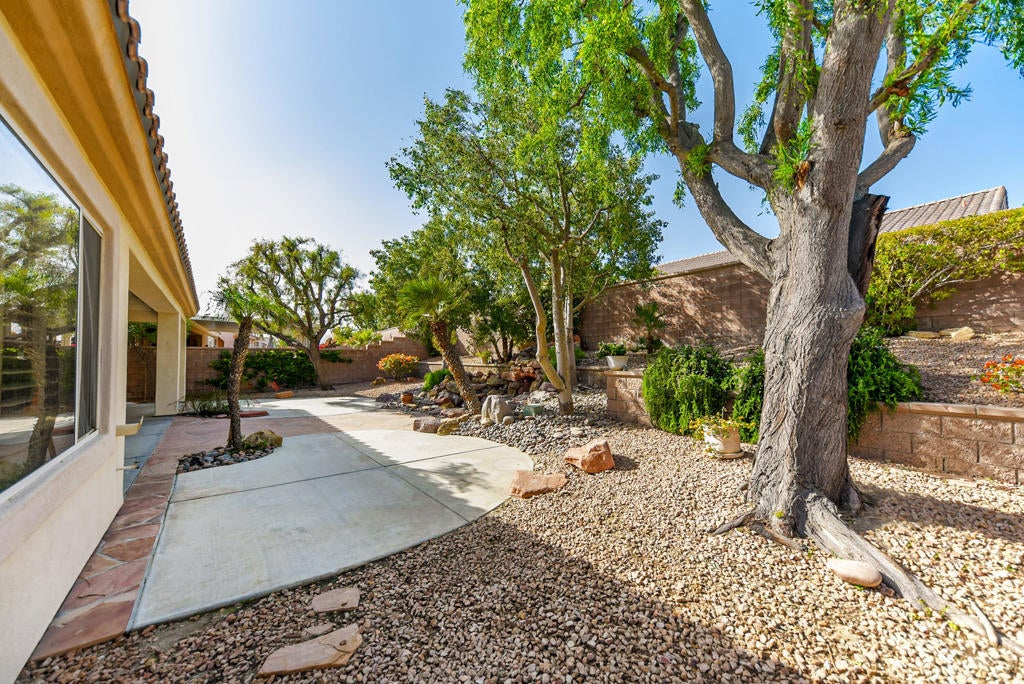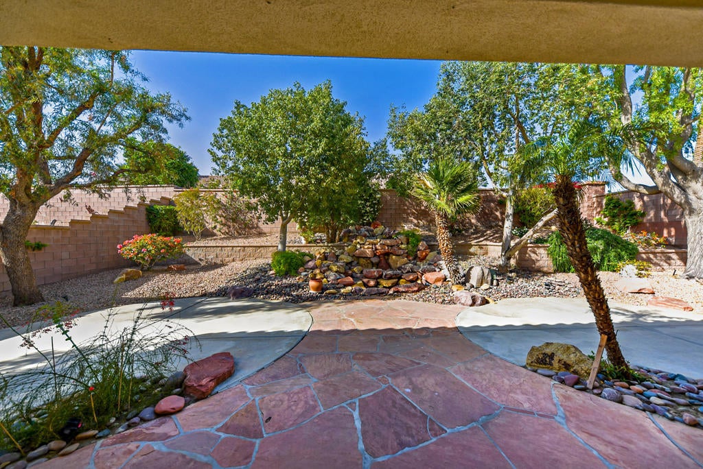 Discover the epitome of comfort in this Montego model home, available for lease in the premier 55+ community of Sun City Palm Desert. Embrace the serene ambiance as you step into the inviting space, adorned with desert landscaping in the front yard. Inside, the open floorplan welcomes you with a flood of natural light streaming through large windows by the slider, adorned with elegant shutters. The kitchen boasts pristine white countertops, complemented by wooden cabinets and gleaming stainless-steel appliances, seamlessly flowing into the dining area. Venture into the backyard oasis, featuring a captivating rock waterfall amidst desert landscaping, trees, and bushes, creating a tranquil retreat. Unwind in the spacious master bedroom, accompanied by a luxurious master bathroom offering dual vanities, a large glass shower, and an expansive walk-in closet. The guest bedroom and bathroom provide comfortable accommodations for visitors, completing this charming residence. Experience a lifestyle of refinement and relaxation in this immaculate home, with the added convenience of an office/den that can be easily utilized as a third bedroom. This home is a great location within walking distance to the clubhouse! Enjoy great amenities such as tennis, pickleball, clubs, pools, fitness center and much more!