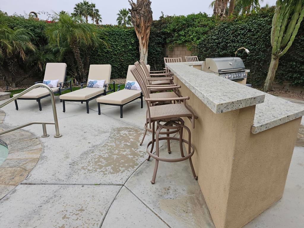Experience luxury and comfort in this stunning seasonal property located in a gated community in La Quinta. Spanning 3,225 square feet, this beautiful home features five bedrooms plus a den, and four and a half well-appointed bathrooms. the property includes formal living and dining rooms, a large kitchen with elegant granite countertops, and a beautiful backyard complete with a salt water pool, spa, built-in bar-be-que., and mist system to keep you cool. Additional amenities include a two-car garage, air conditioning, brand-new carpeting, and the home is fully furnished and turnkey. making it perfect for seasonal stays. Ideally situated near Coachella and Stagecoach festivals, and close to the Polo fields, this property offers both convenience and luxury in a prime location. Call for more details .