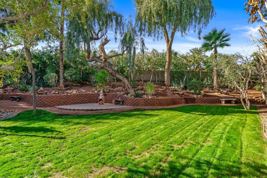 Nestled on a generous 11,326 sq. ft. lushly landscaped lot, this 1981 built Spanish home is filled with character and charm. A welcoming courtyard entry framed by a mature Plumeria tree sets the tone for the warm and inviting spaces within. Wood-look tile flooring flows throughout the home, enhancing it's style and comfort. Two spacious ensuite bedrooms, each with high ceilings are thoughtfully separated for privacy offering ample closet space. Both ensuites open to a unique outdoor patio spaces. The expansive living room features high ceilings, a fireplace, and a wet bar, which opens seamlessly to the park like backyard and patio. The kitchen includes a cozy breakfast area and a convenient laundry area. Mission Wells is a small, gated enclave of just 72 homes, residents enjoy a serene setting with excellent shared amenities! A pool and spa, along with tennis and pickleball courts are just a few lots away! The HOA maintains the front landscaping and also provides a separate area for motor home parking. YOU OWN THE LAND!
