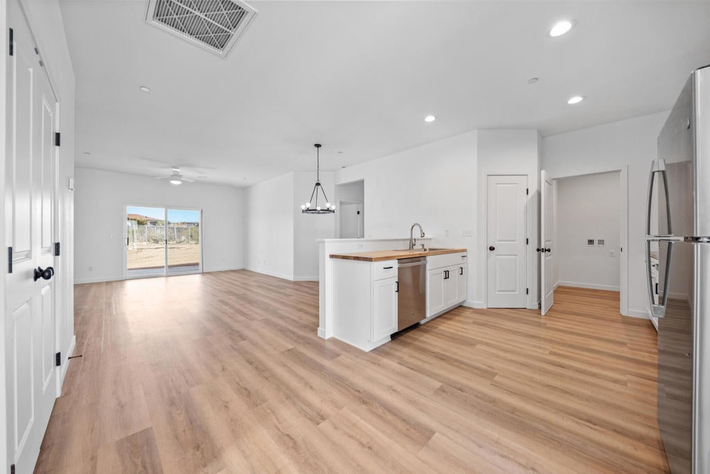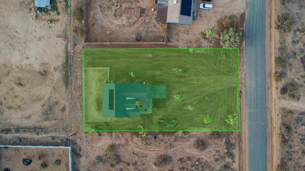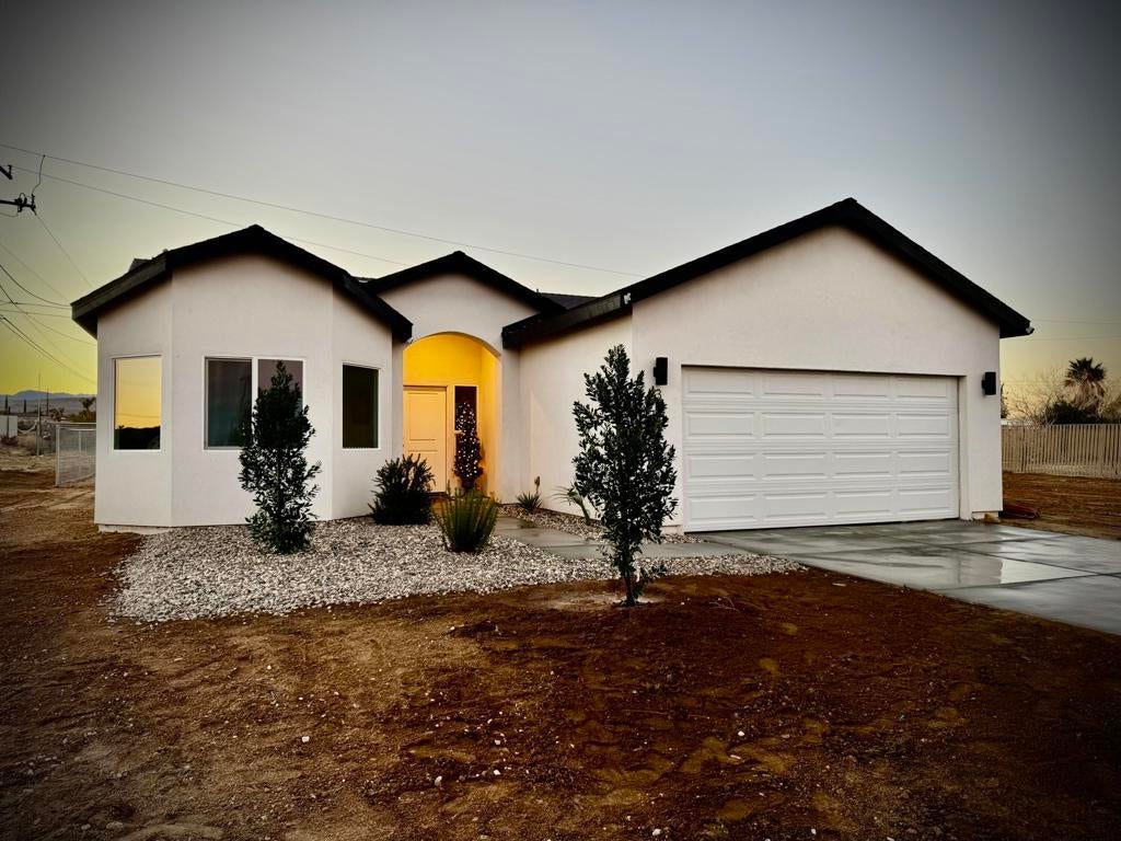 Welcome home! This beautiful newly built 4-bedroom, 2-bath modern farmhouse-style home, with fully paid solar completed in 2023, is the complete package of style, comfort & value. This homes checks all of the boxes. This wonderful property sits on a spacious, open lot just off a paved road and features a perfect collection of mature Joshua Trees, adding charm and capturing the true essence of desert living.Designed for both comfort and efficiency, this home is fully electric, equipped with paid-in-full solar, Title 24 compliant construction, and high R-value insulation--all contributing to exceptional energy efficiency and low utility costs. Located within walking distance to local schools and offering central heating and air conditioning, this home delivers modern convenience in a serene desert setting.Inside, the kitchen features stainless steel appliances, while sleek black fixtures and hardware provide a stylish, cohesive look throughout. Enjoy generously sized bedrooms, ceiling fans, a well-appointed laundry room, and an inviting open floor plan ideal for everyday living and entertaining. Durable laminate flooring flows throughout, enhancing the home's clean and contemporary aesthetic.The fully fenced backyard offers ample space--perfect for pets, recreation, or future customization. With plenty of potential to add your own creative touches, this home is priced right, beautifully finished, and move-in ready. An impressive offering with exceptional value. Come make it yours today.Buyer and buyer's agent to independently verify all information, including but not limited to permits, square footage, property features, and intended use.'