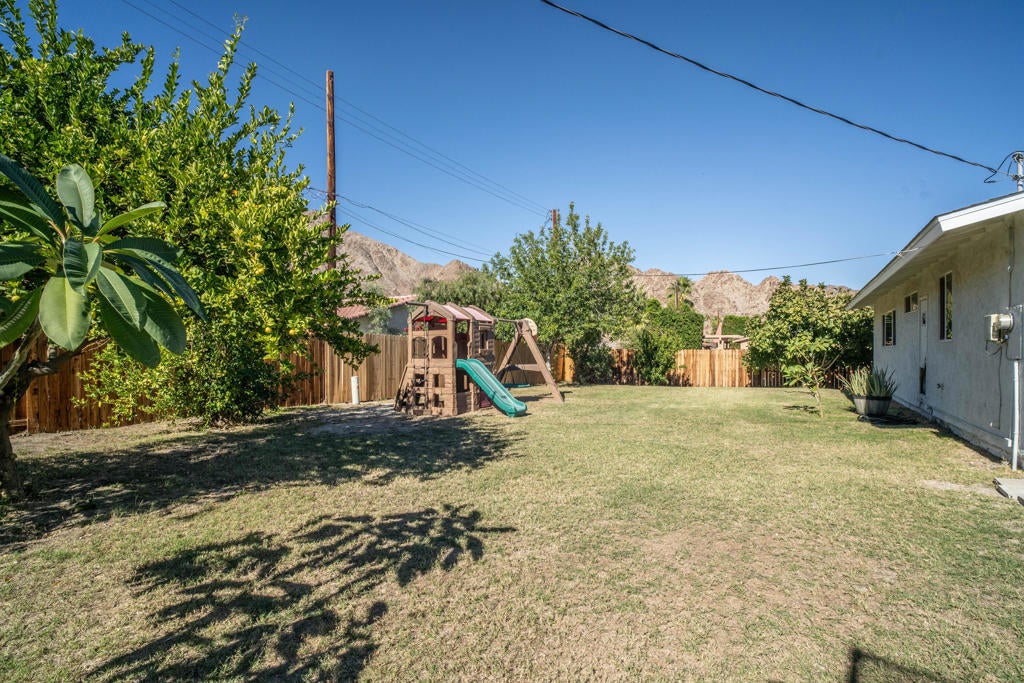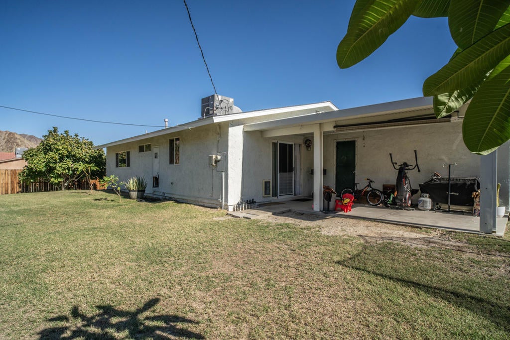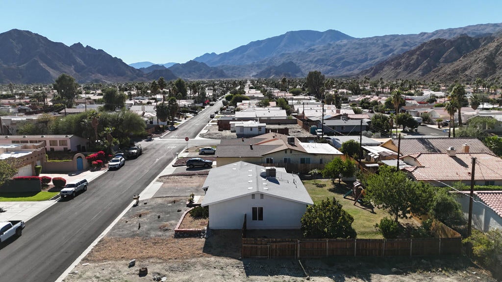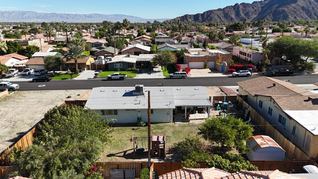 Discover this beautifully updated La Quinta Cove gem, offering sweeping million-dollar views of the Santa Rosa Mountains from a rare double lot. With 4 bedrooms, 2 bathrooms, and 1,320 sq ft of refreshed living space, this home blends comfort, style, and future potential.Recent upgrades include a brand-new roof and fascia (2025) with a 10-year warranty, new plywood, a low-emitting thermal underlayment to help beat the desert heat, 12 new roof vents, and 30-year Owen's Corning Duration Cool shingles. The new garage door (2025) features two remotes, exterior keypad access, and app control for convenience.Interior improvements shine with wall-to-wall tile flooring (2022), updated paint, removed popcorn ceilings, recessed LED lighting, new windows, and a more open layout created by removing the dividing wall between the kitchen and living room. The remodeled kitchen offers soft-close cabinetry, quartz countertops, a built-in spice rack, and a corner lazy Susan.Outdoor living is just as inviting, with desert landscaping in the front yard, new wood fencing, an RV access gate, and a spacious backyard featuring an Alumiwood patio cover and extended cement patio. Fruit lovers will enjoy the Mexican lime, citrus, and fig trees--all productive and thriving.This is a unique opportunity in the Cove with space, updates, views, and future expansion potential, there's a vacant lot next door, NOT included in this property--opening the door to endless possibilities