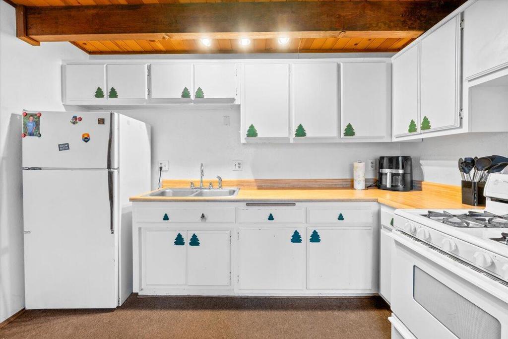 Classic gambrel-style cabin in a peaceful Erwin Lake neighborhood. Features include beamed ceilings, a wood-burning rock fireplace, an eat-in kitchen, and two spacious bedrooms with one bath. The level, fenced lot with concrete parking offers easy access and year-round convenience. A solid investment opportunity in Big Bear.