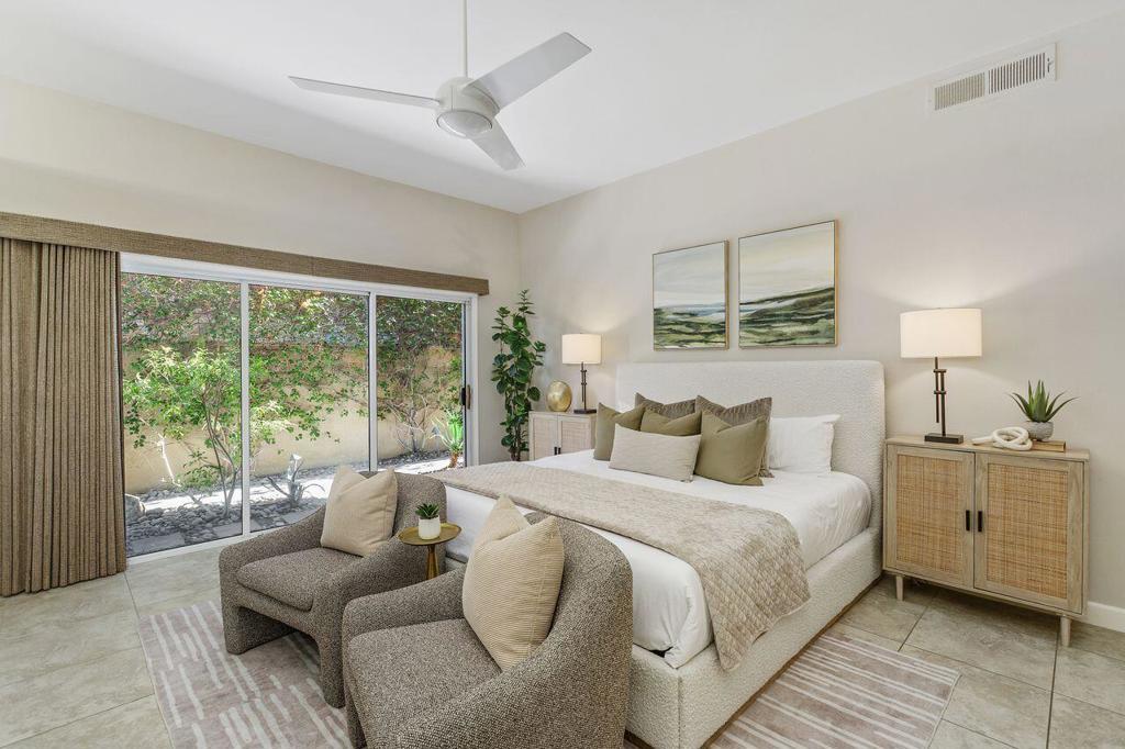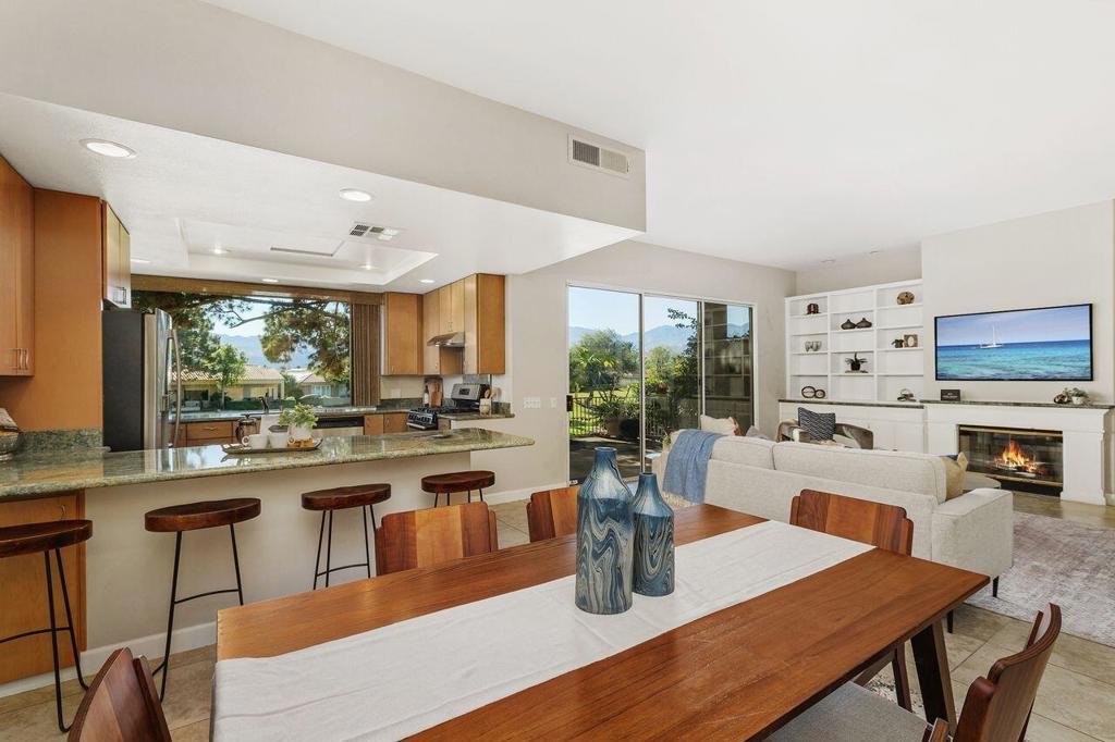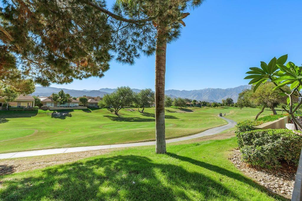 Welcome to Mission Hills Country Club living in this beautiful 3 bedroom, 2 bath condominium perfectly positioned on the 8th hole of the iconic Pete Dye Golf Course. This residence captures the very best of desert luxury, offering mountain vistas and tranquil Southwest fairway views that create an atmosphere of relaxation from the moment you arrive. A custom-designed courtyard entry welcomes you into an expansive open-concept floor plan filled with natural light. The living room showcases elegant built-in cabinetry, a charming fireplace, and oversized picture window framing the captivating scenery outdoors. The upgraded kitchen is a chef's delight, featuring stainless steel appliances, contemporary finishes, a convenient breakfast bar, and an adjoining dining area ideal for casual meals or intimate gatherings. The generous primary suite with wall-to-wall closets and a spacious en-suite bathroom offering dual vanities, a soaking tub, and a separate walk-in shower. The third bedroom, currently configured as an office/den, provides versatility for remote work, creative pursuits, or additional guest accommodations. Additional highlights include a 3-car garage with custom built-ins for exceptional storage, as well as low-maintenance desert landscaping that complements the home's polished architectural aesthetic. Residents of Mission Hills Country Club enjoy world-class amenities, including championship golf, renowned tennis and pickleball facilities, fitness center, and a beautifully remodeled clubhouse that serves as a vibrant hub for social and recreational activities. MHCC boasts 3 private golf courses, National Croquet tournaments, US Open & numerous USTA National Championships, Pickleball, Gym and Westin Rancho Mirage Golf Resort & Spa ,Golf, Fitness, Tennis and Pickleball - memberships are available. Ask for membership details to come enjoy your season in the sun!