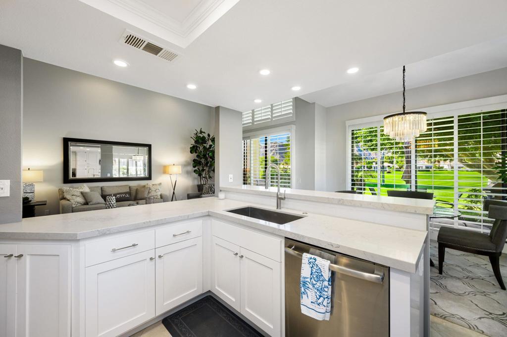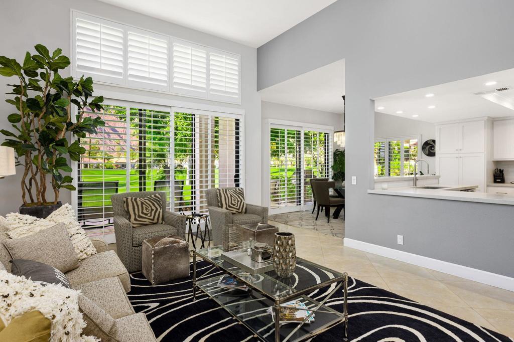 VIEWS! VIEWS! VIEWS! This remodeled Champion 3 is like no other that you have seen! A stunning reflection of today's light and bright color pallet with designer furnishings and touches throughout. The main wall between the kitchen and living room is now open, revealing a floor to ceiling stacked stone fireplace that takes center stage. The kitchen with shaker style cabinets, stainless steel appliances, gas range and beautiful quartz counter tops are sure to please. The floors are of 24' porcelain tile and the two bedrooms have upgraded designer carpet. There is also a private patio off the Primary suite. Plantation shutters grace the windows and sliding glass doors open to the outdoor patio w/BBQ overlooking the Palmer Private course and gorgeous mountain views that are lit up at night. Perfectly situated next to the community pool for easy access This popular floorpan offers 1,627 sq ft with 2 bedrooms, plus a den/could be 3rd bedroom. Storage cabinets and epoxy flooring finish the garage. This beautiful home is offered turnkey furnished. THIS IS THE ONE!