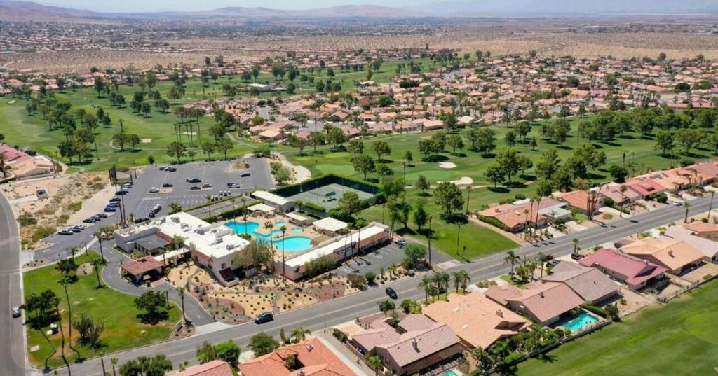 Discover resort-style living in this beautifully remodeled upstairs one-bedroom end unit at Mission Lakes Country Club. Set within the acclaimed Ted Robinson-designed 18-hole championship golf community, this upgraded home features expanded square footage, new windows throughout, and a newer sliding glass door that fills the space with natural light. Offered fully furnished, this move-in-ready condo includes a newer AC unit and two balconies--front and rear--with sweeping panoramic mountain views. Enjoy the Riviera-style pool and spa, clubhouse, tennis courts, and on-site hotel and restaurant--your perfect desert retreat or full-time residence.