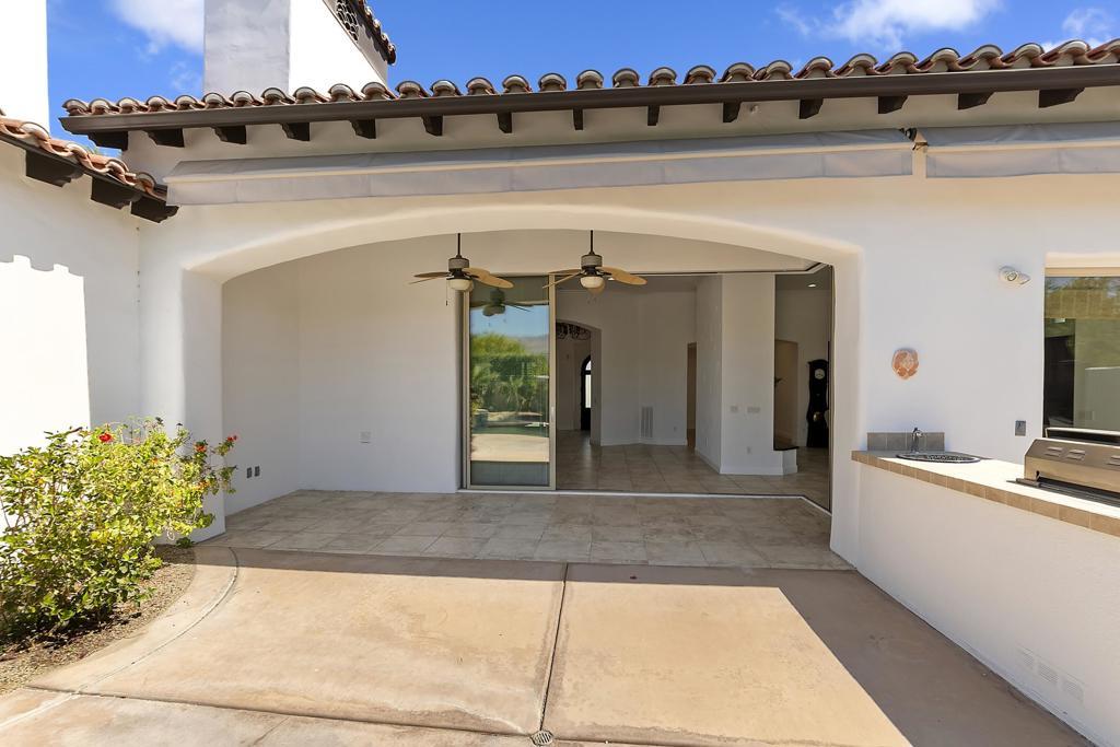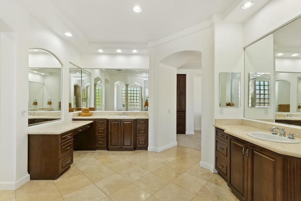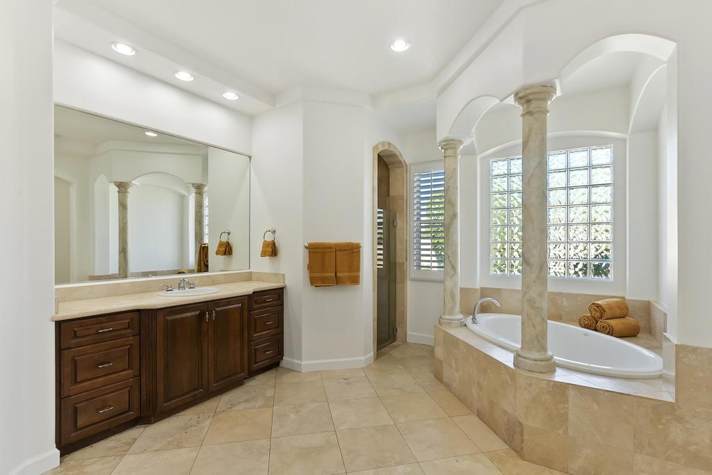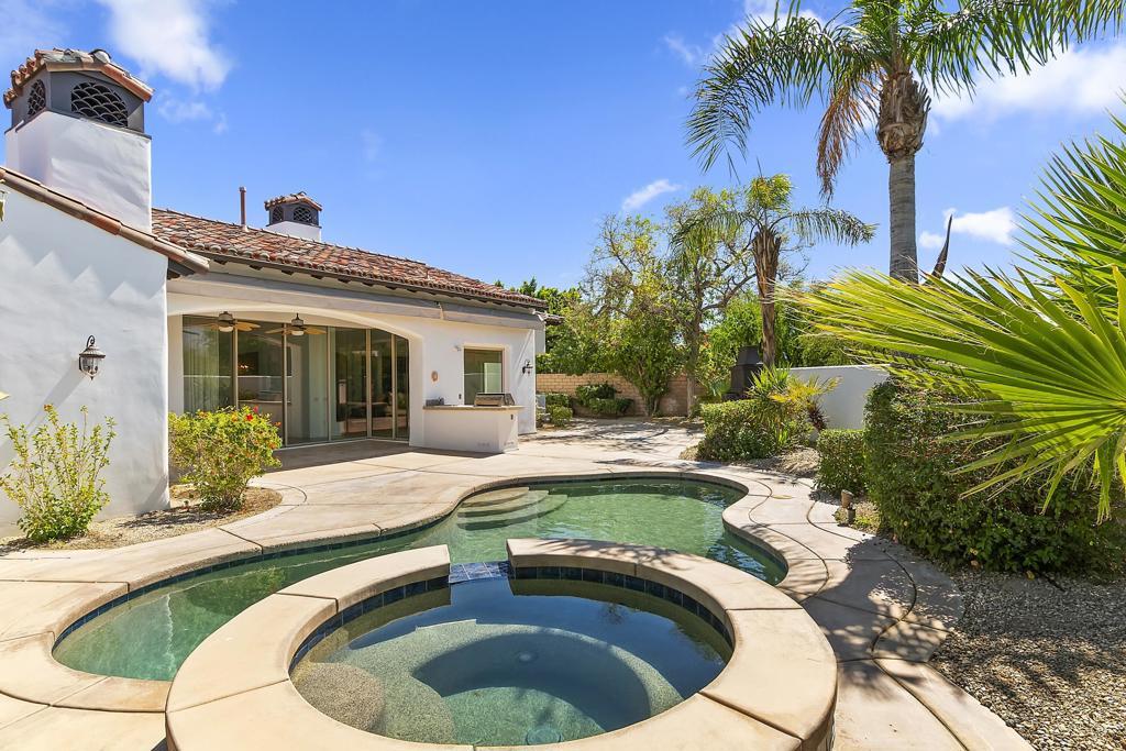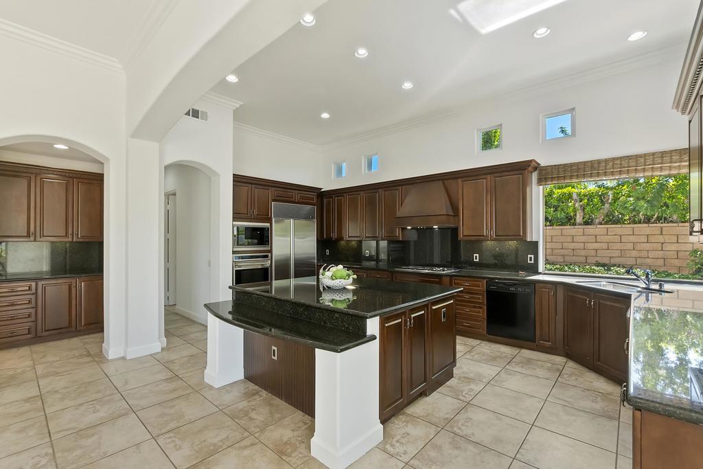 Cielo Vista-a small exclusive gated twelve home enclave in prestigious Rancho Mirage. This elegant well maintained Mediterranean style home located at the end of the cul de sac offers privacy, charm with four bedrooms/six baths plus detached casita. All bedrooms have en suite baths. Quality craftsmanship with impressive 16 ft. wood beamed rotunda entry with crystal chandelier, art niches and clerestory windows. Spacious open floor plan, crown molding, trey ceilings, custom wall plaster and four fireplaces. Gourmet kitchen, a chef's dream with state of the art appliances. Seamless outdoor transition thru 9 ft. pocket sliders to large covered patio, pool/spa, fireplace and outdoor kitchen. A fabulous home for the discerning buyer who appreciates elegance with grand space and outstanding mountain vistas.