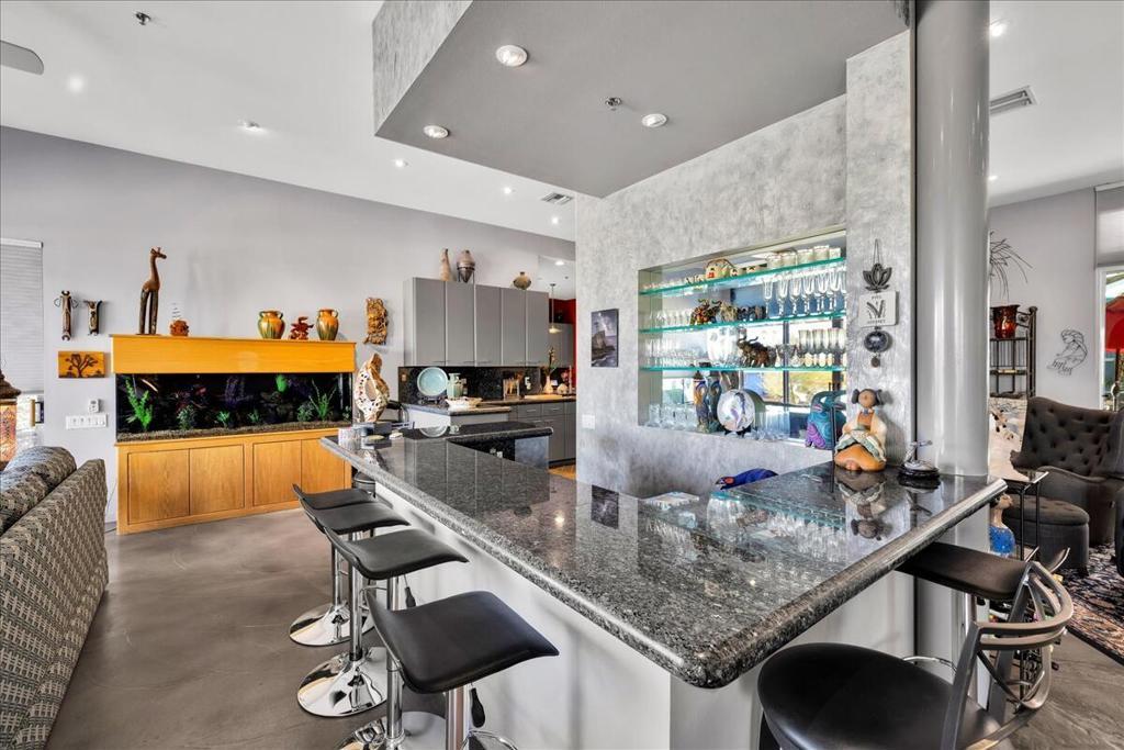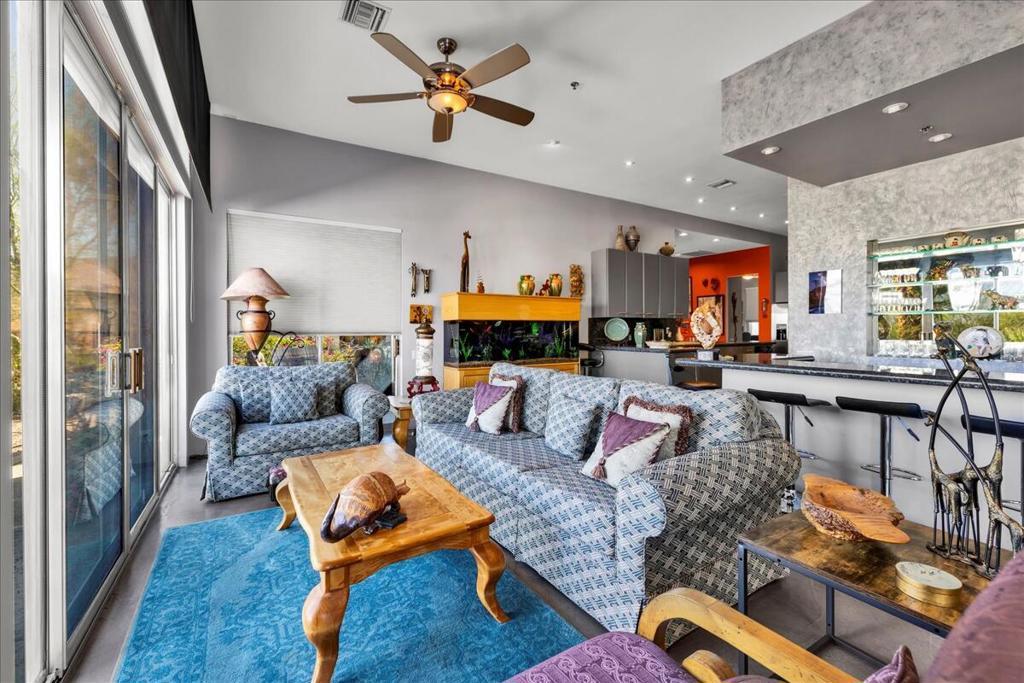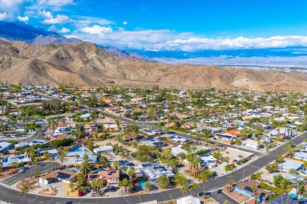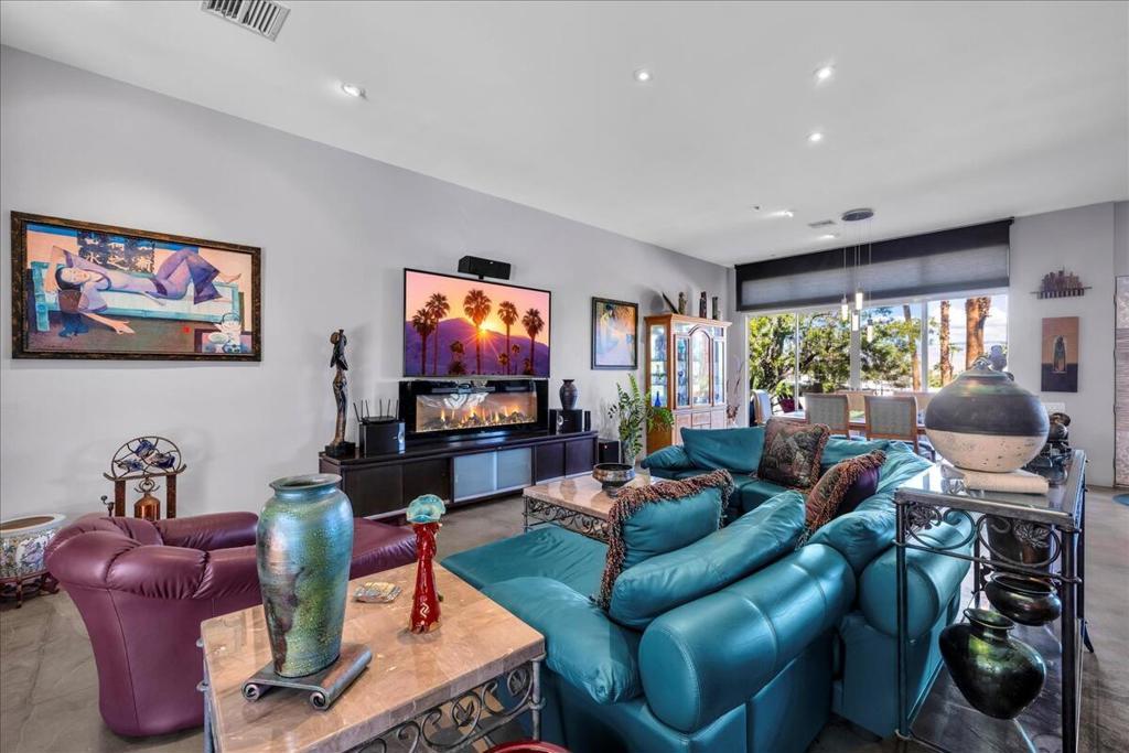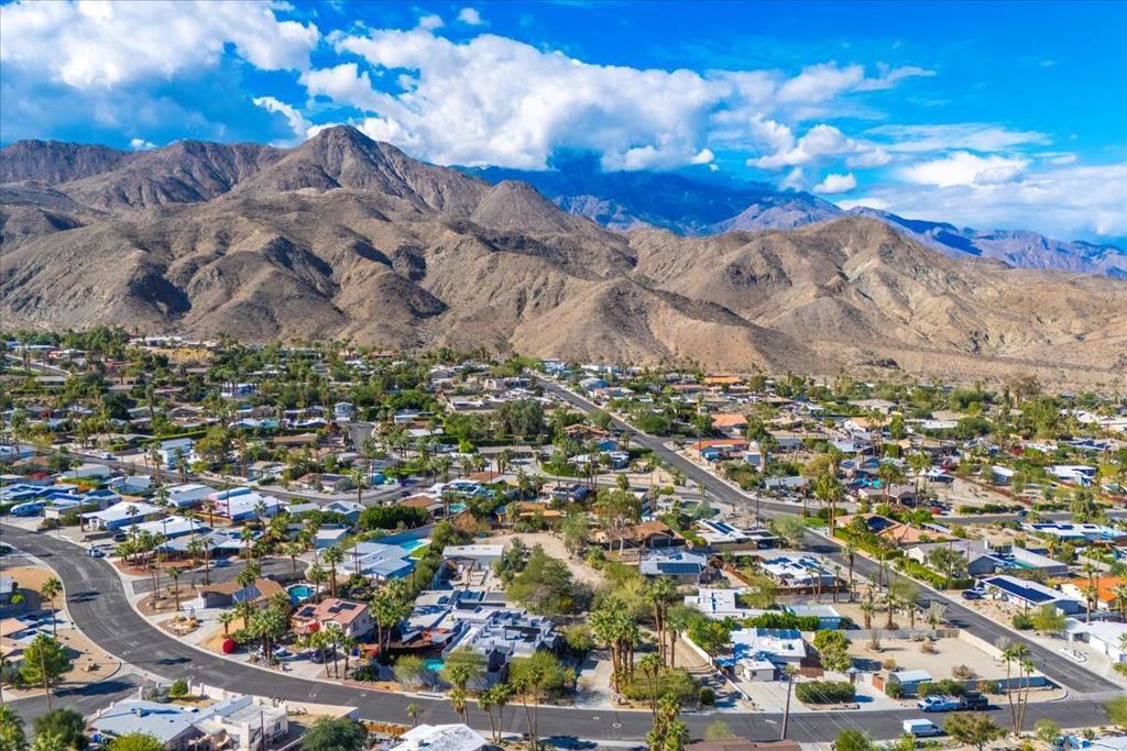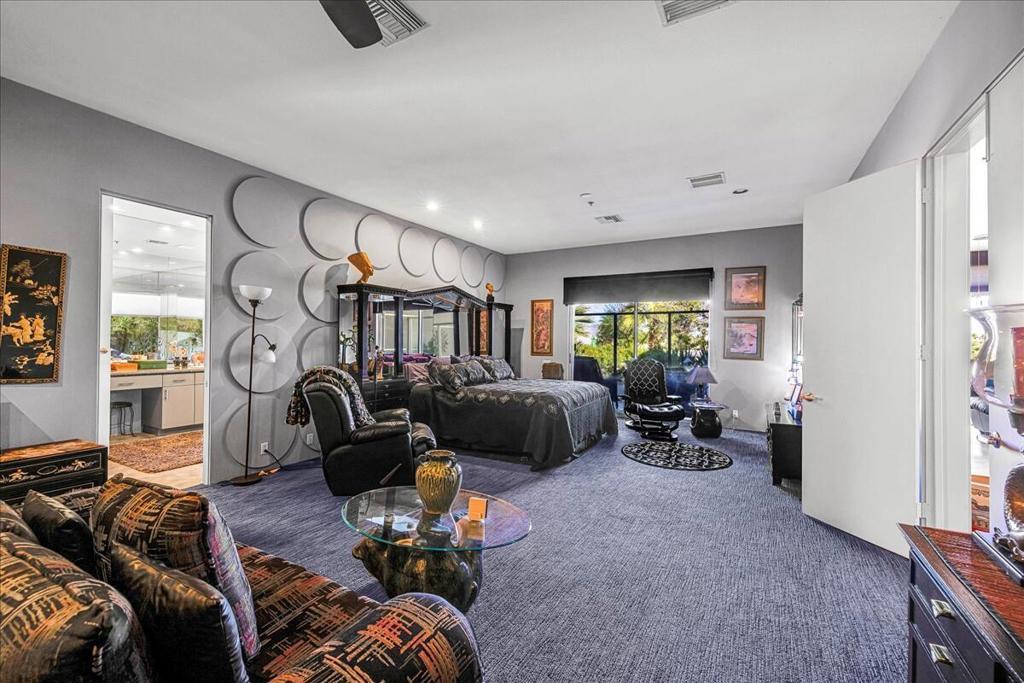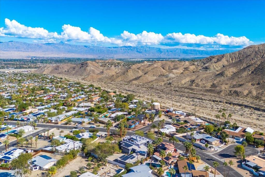 Perched high in Cathedral City Cove, this captivating 4-bedroom, 4-bath home with a pool/spa, upper deck and an additional office space blends comfort, style, and sweeping views of the mountains and sparkling night lights of the valley floor. The beautifully landscaped and expansive front yard sets a warm welcome as the circular driveway leads you up a set of stairs to a dramatic double door front entry. Inside, large picture windows fill the home with natural light, while in the living room, there is a delightful mini bar--perfect for entertaining, and a decorative tile fireplace adding charm and character. All bedrooms feature en suite bathrooms, and the home includes a shared dining space with windows to see the view! The large living room is perfect for entertaining with room for plenty of seating. From the kitchen, there is a quiet dining nook and an outdoor patio area. The primary bedroom is large and has great views and an enclosed patio. There is also a large bathroom with a walk-in shower, a soaking tub, and a walk-in closet. The bathroom offers dual sinks and plenty of counter space and storage! Set on an impressive 24,000 sq ft lot, this property embraces true desert indoor-outdoor living with a sparkling pool, and spa, and generous patios. Approx. 4,102 sq ft of living space and leased solar panels for energy efficiency, and additional solar panels to help heat the pool, this stunning hilltop retreat offers space, style, and remarkable views from every angle. This home also offers an upstairs patio space, ready for you to use your own imagination to bring it to its full potential. There is an inside laundry room and a rare 4-car garage, which offers shelving and plenty of storage off a private driveway. The driveway also offers ample parking opportunities. There are no HOA Fees here, and you own the land! Come see this lovely home today and make it yours for the new year!