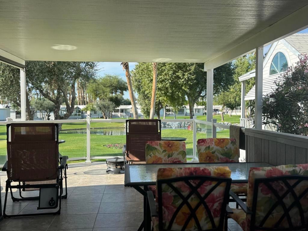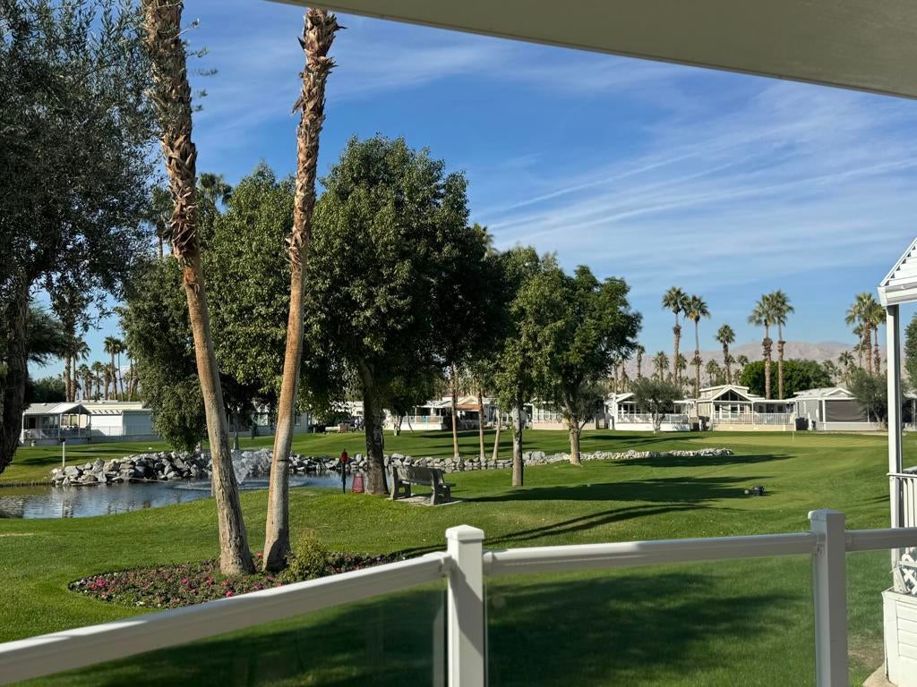 Discover resort-style living in this pristine 2015 top-of-the-line Fairfield destination model home, perfectly positioned on the 12th hole with breathtaking mountain and golf course views. Immaculately maintained and fully stocked, this exceptional unit features a beautiful extended deck--ideal for relaxing, entertaining, or soaking in the incredible scenery. A shed, washer, dryer, and golf cart are all included, adding convenience and value.Located in the highly sought-after guard-gated community of Rancho Casa Blanca, residents enjoy free year-round golf, a state-of-the-art fitness center, pickleball and tennis courts, and multiple pools and spas for ultimate relaxation. Additional amenities include a bocce ball court, billiards, horseshoe pit, and more than 60 clubs and classes that foster an active and welcoming community. With two large clubhouses and four satellite buildings, there's always something to do and endless ways to connect.Whether you prefer staying active, relaxing in a serene retreat, or a perfect blend of both, this home delivers the best of desert resort living--complete with your own golf cart for effortless access to all the community has to offer. A rare opportunity to own a move-in-ready gem with unparalleled views in an amenity-rich setting!