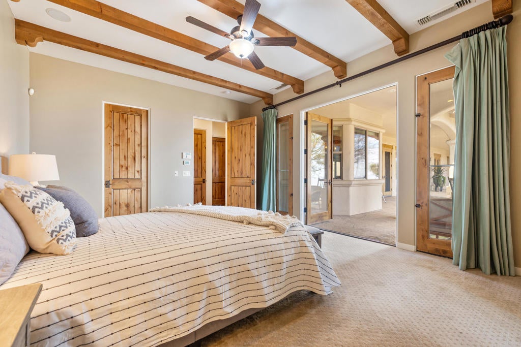 Breakfast Bar, Breakfast Area, Separate/Formal Dining Room, High Ceilings, Open Floorplan, Primary Suite, Walk-In Pantry, Walk-In Closet(s), Beamed Ceilings, Partially Furnished, Utility Room