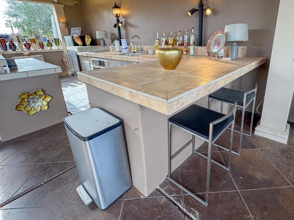 Outdoor Resort Indio is a Class A Motorcoach resort. This is an RV lot. Perched on the coveted 'The Hill' at Outdoor Resort Indio, this expansive luxury RV lot offers one of the most stunning and wide-open views in the entire resort. Enjoy unobstructed panoramic vistas of the Chocolate Mountains, which transform beautifully as the sun sets, along with cascading waterfalls, three tranquil ponds, a charming bridge, and the lush golf course--all perfectly framed by an extra-wide opening in the elegant L-shaped Alumawood pergola. Designed for both privacy and comfort, the lot features a full-height privacy wall, a full rear electric sunshade, and ample accent lighting to create a serene ambiance day and night. Three ceiling fans and four heaters ensure comfort, while decorative pots and stylish bar stools add a touch of elegance to the outdoor living space.The spacious outdoor kitchen is an entertainer's dream, complete with a large island and bar, room for a full-size fridge, BBQ, and tiled cabinets for convenient storage. Hot water is readily available, making meal preparation effortless, while the thoughtfully designed layout provides both mid-lot and original post hookups for added convenience. Whether you're enjoying a peaceful morning coffee while watching the ducks on the ponds or hosting an evening gathering under the pergola's rubber-coated tarp roof with entertainment lighting, this lot offers the ultimate blend of luxury, comfort, and resort-style living. Come see the amazing view for yourself!
