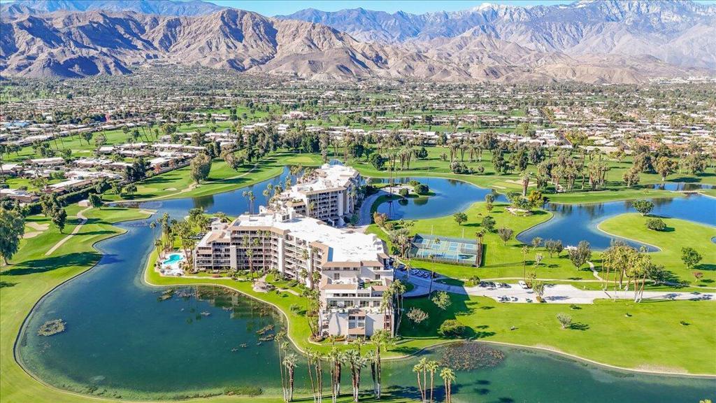 Stunning views from the third-floor end unit of the most sought after location (Building 900) in Desert Island Country Club. Lake, mountains and golf course views. Open floor plan, high ceilings, floor to ceiling glass, extra-large covered patio. Ample storage space in the unit with additional personal storage located in the underground parking garage. HOA dues include cable, wi-fi, water, gas, electrical (includes AC), building insurance, roof, 24-hour security, clubhouse, fitness center, pool, spa, tennis & pickleball courts, paddle boats and common area maintenance. Desert Island offers golf memberships and is centrally located for easy commute to Palm Springs and Palm Desert.