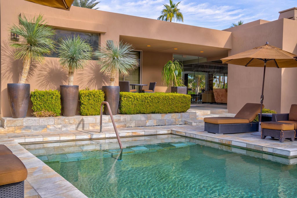 ( *Booked JAN FEB MARCH APRIL 2026* ) Fabulous custom built home with 3-bedroom suites and 4 bathrooms. Located on a cul de sac in Indian Wells Country Club and on the golf course. You will have a very private saltwater pool & spa located in the front courtyard and not on the golf course. The open floor plan is the essence of California casual luxury living. Walls of glass bring organic natural light into the living spaces. You will have it all - privacy and mountain views and a golf course view. The covered back patio on an elevated lot is ideal for entertaining! The island kitchen features gas range and stainless appliances. Smart TV in living room. SONOS sound system. Remote control gas fireplace. The primary bedroom suite boasts spacious walk-in closet. Full size washer & dryer inside. Attached 2-car garage with direct access. Indian Wells Country Club is a member of the INVITED family of clubs (formerly ClubCorp). For seasonal rental bookings, wireless Internet, television services, plus utilities up to $300-mo are included. For annual lease terms tenant pays screening fees, utilities and Internet. HOA fees, landscape maintenance, pool maintenance is included regardless of booking type. 24-hour manned gate & roving patrol. Indian Wells CC is a member of the INVITED family of clubs (formerly Clubcorp). No memberships are included. Concierge trash service means you never have to worry about which day is trash day. Contact agent for availability.