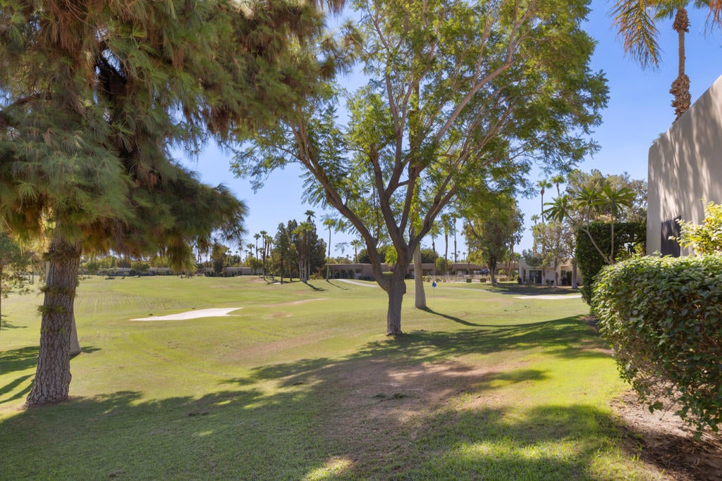 Enjoy a quiet cul-de-sac with a golf course view ...add gorgeous desert-scape; and simply relax...YOU are home! This home includes an HVAC near 5 years young; NEW windows in the living room and kitchen; NEW garage door; newer appliances; and it comes furnished! The Desert Princess is mid-valley to all activities; restaurants; golf; tennis; pickle ball...and HOCKEY! Amenities include WiFi; Cable; Country Club; 27-hole golf course; pickle ball and tennis as well as a gym! There is also several EV CHARGING STATIONS for your electric vehicle! LAND LEASE EXPIRES 2069;