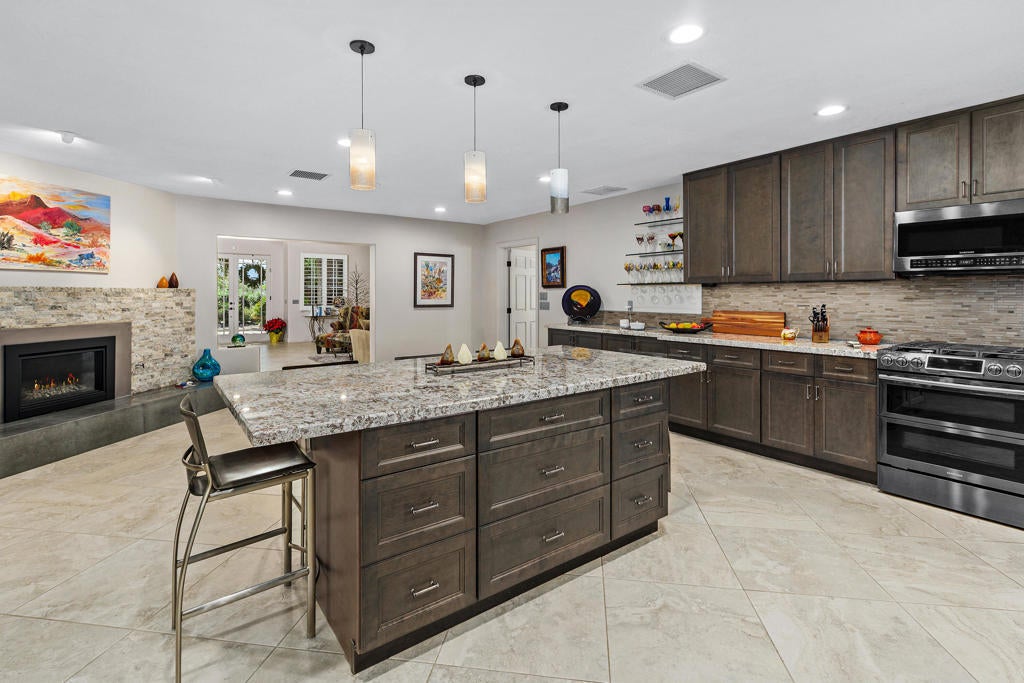 Welcome to your private, one-of-a-kind resort-style horse ranch on a breathtaking 4.6 acres!This exceptional estate offers the ultimate equestrian and outdoor lifestyle, complete with a barn , tack room , wash racks, a riding arena, and expansive turnout pastures. Plus it Backs directly to BLM land, allowing the property endless opportunities for horseback riding and hiking right from your own backyard.Pride of ownership is evident throughout. The grounds are impeccably maintained with lush green lawns, mature shade trees, and fully enclosed fencing that enhances privacy and tranquility. Multiple seating areas invite quiet moments to enjoy birds singing, stunning sunsets, and peaceful mornings.In addition to the main residence, the property features an approximately 1,400+ sq. ft. garage, offering rare and valuable space for 5-6 vehicles, boats, tall RV-style vehicles, or extensive storage. The third bay includes tandem parking, and workbench making it Ideal for hobbyists or collectors.The inviting 4-bedroom, 2-bath home is thoughtfully designed, including a versatile fourth bedroom with private exterior access--perfect for a casita, guest suite, office, or studio. The entertainer's kitchen is a standout, showcasing a large center island, stylish pendant lighting, elegant gray cabinetry, abundant storage, granite countertops, stainless steel appliances, and a striking tile backsplash. The kitchen opens seamlessly to the living room, creating a spacious great-room ambiance anchored by a beautiful stone fireplace.The oversized primary suite is a true retreat, filled with natural light from expansive windows and sliding doors that blur the line between indoor and outdoor living. The primary bathroom features dual sinks and an impressive custom walk-in shower accented with glass block and designer tile. A bonus room off the primary suite offers endless flexibility making it ideal for an art studio, private office, reading nook, or fitness space. Two additional guest bedrooms share a conveniently located bathroom.Outdoors, the back patio provides an additional gathering space overlooking a beautifully landscaped garden and tranquil views of the horses--perfect for entertaining or unwinding at the end of the day. A charming gazebo is already in place, ready to host special events or gatherings presents incredible potential for horse boarding, rentals, or small events. Fully remodeled approximately 2015. A must see!