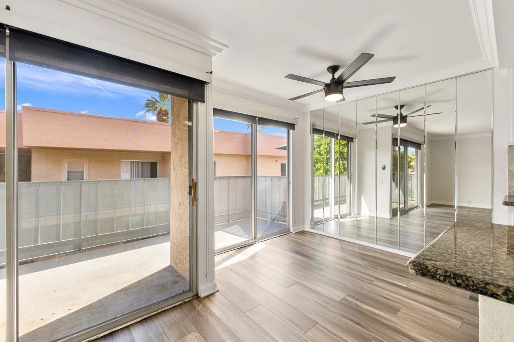 Welcome to this beautifully updated top-floor 1-bedroom, 1-bathroom condo located in the heart of Palm Springs. This home offers a bright and open floor plan, highlighted by a spacious living area and a large walk-in closet. Step outside to your private balcony, the perfect spot to relax or entertain while enjoying the desert lifestyle. Added conveniences include in-unit laundry and an assigned parking space. Residents enjoy access to resort-style amenities such as a sparkling pool, rejuvenating spa, and BBQ area. Ideally situated in a highly sought-after neighborhood, this condo combines comfort, style, and an unbeatable location--making it a perfect Palm Springs retreat or investment.