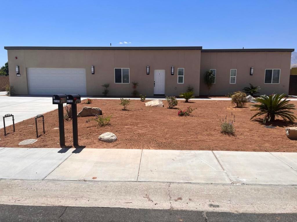 Built 2023. newer 4 bedroom 3 bath home with oversized garage (24x24) with an opening height of 7' 3', great form large vehicles.All appliances included with spacious laundry room with sink. Ductless cooling/heating system for air quality--Efficiently cool your entire home or one room at a time.. Block fenced yard with lush green artificial lawn and fruit trees for total privacyWater/trash/gardner included.