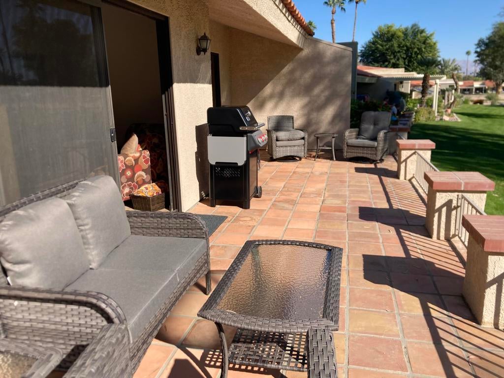 New Seasonal Rental - Popular Vintage Floor Plan at Palm Desert Resort Country ClubDiscover this beautifully updated 2-bedroom, 2-bathroom seasonal rental located in the highly sought-after Palm Desert Resort Country Club. The desirable split-bedroom layout places each bedroom on opposite sides of the spacious living and dining area, offering comfort and privacy for you and your guests.Enjoy an updated kitchen and bathrooms, stainless steel appliances, a breakfast bar, and both tile and carpet flooring. The home features vaulted ceilings, overhead fans, in-unit laundry, and comes fully furnished and turnkey for an effortless stay.Step outside to the south-facing extended patio, complete with new outdoor furniture, BBQ, and a dining set, all overlooking lovely greenbelt views. A 2-car garage provides convenient parking and storage.Located within a guard-gated golf community, residents enjoy access to a championship 18-hole course (pay-as-you-play or membership packages available), 20+ pools and spas, pickleball, tennis, bocce ball, and a vibrant, friendly clubhouse with plenty of social activities.$5,500 per monthAvailable: April through December, 2026,April through December, 2027Perfect for your desert getaway--contact us to reserve your stay!
