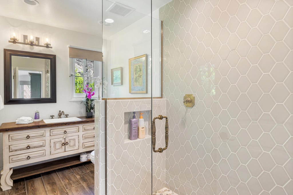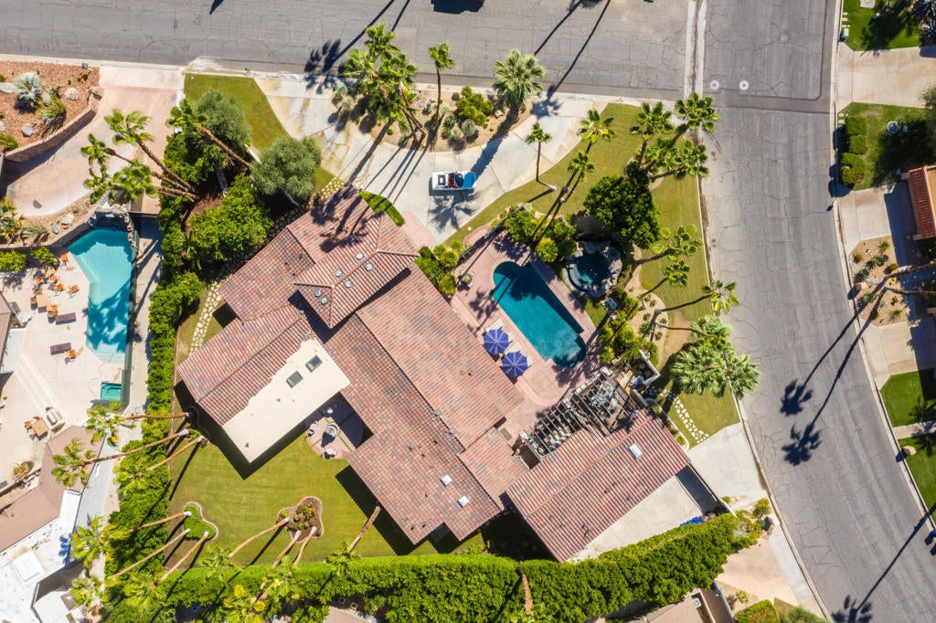 Casa Suenos - An Architectural Masterpiece in South Palm Springs. Tucked away in the exclusive enclave of Andreas Hills, Casa Suenos is a private sanctuary where timeless elegance meets elevated design. Surrounded by mountains, the estate is bathed in sunshine, sheltered from the wind, and framed by awe-inspiring 360 views. This remarkable location offers the ultimate setting for enjoying the Palm Springs lifestyle, just moments from world-class hiking, premier golf, and vibrant downtown dining and shopping. Reimagined and completely rebuilt just three years ago, this 5,417 sq. ft. custom estate is a meticulously curated Spanish Colonial masterpiece infused with romantic Moroccan and French influences. Every finish, texture, and detail has been intentionally selected to create a cohesive vision of escape, romance, and refined beauty. Designed as your own personal resort, the property features a sparkling pool with cascading waterfall, tranquil fountains, citrus gardens, and multiple lounge areas set against dramatic mountain vistas. Pocketing sliding doors create seamless indoor-outdoor living, opening to a spectacular front-loaded pool and spa, a Spanish-tiled outdoor fireplace, a fully equipped al fresco kitchen, and a raised patio that captures what may be the most breathtaking mountain views in the entire Coachella Valley. The estate offers 4 luxurious en suite bedrooms plus a fully appointed detached casita with its own kitchen, living room, and laundry, perfect for extended family, guests, or private retreats. Grand living spaces are anchored by soaring vaulted wood-beamed ceilings, artisan tilework, bespoke cabinetry, and a handcrafted dark wood tequila bar--hallmarks of true craftsmanship. Blending elegance with comfort, the primary suite offers a romantic escape infused with warmth and style, complete with a spa-like bath, dual walk-in closets, and a private office for quiet retreat or stylish remote work. Each guest suite has been thoughtfully designed with en suite baths and elevated finishes to welcome visitors with the most refined taste. Casa Suenos is more than a residence, it's a timeless expression of romance and elegance, seamlessly intertwined with the sophistication of Palm Springs living. Welcome home to Casa Suenos.