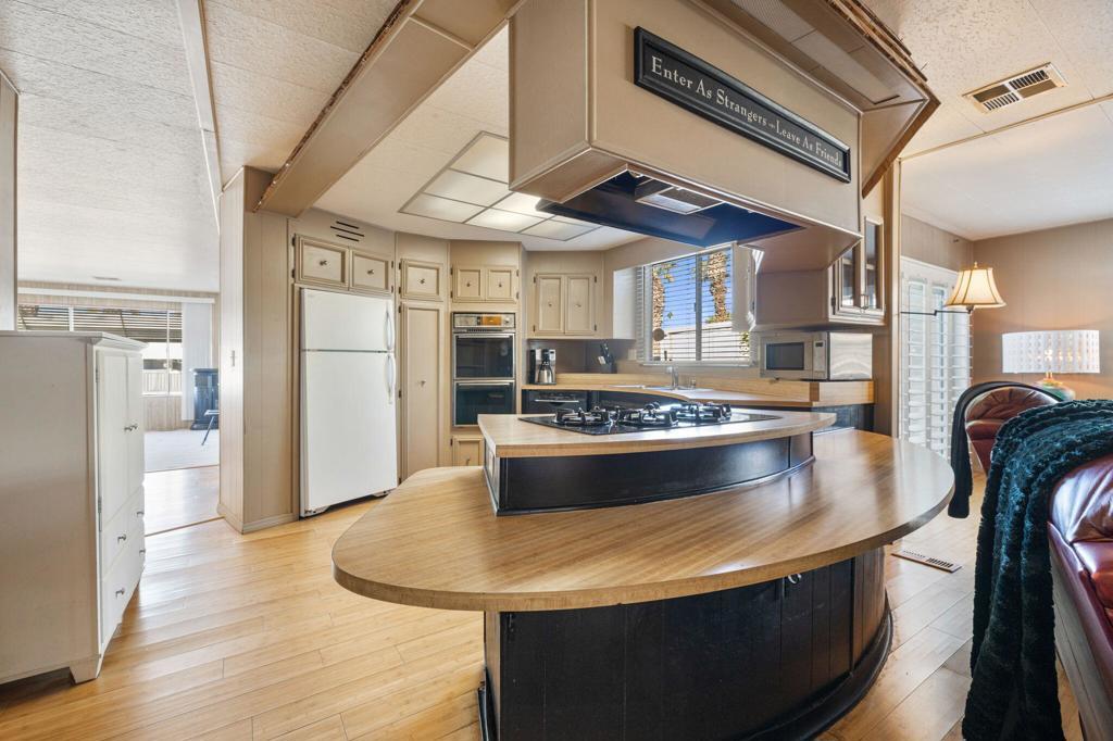Welcome to Palmdale, an active adult community featuring outstanding social amenities such as a full-size pool with a separate spa, shuffleboard, and a clubhouse that hosts numerous events throughout the year. This home stands out as one of the largest in the community, offering 3 bedrooms, 2 bathrooms, an oversized family room, and an open kitchen complete with a wet bar and extra seating at the counter. A spacious living room includes a second dining area, multiple windows for abundant sunshine, and scenic views. Enjoy two outdoor patio spaces perfect for entertaining guests! Improvements include newer shutters, HVAC, flooring, lighting, toilets, hardware smoker BBQ interior doors & more. The property sits on a corner lot with carport parking and an additional area suitable for a golf cart or recreational items. RV parking may be available at back of community. Conveniently situated just steps away from the clubhouse, pool/spa, Polo grounds, La Quinta Old Town, the newly revived historic downtown Indio, golf courses, and shopping destinations. Welcome home!