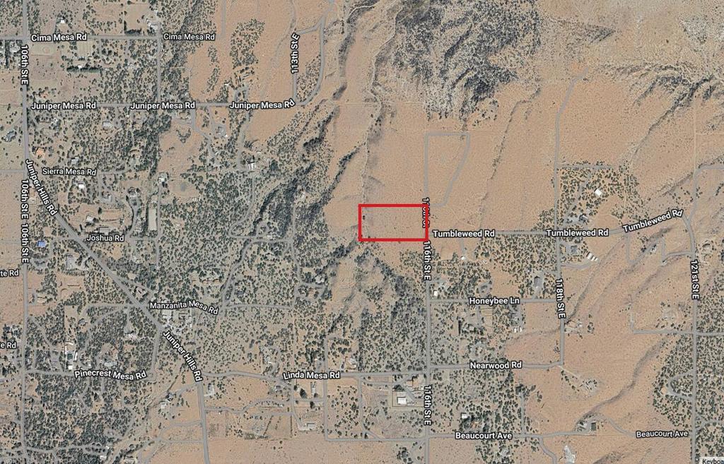 Flat 5 acres in beautiful Juniper Hills, dirt road frontage on 116th Street East, Residential / Light Agricultural A-1 zoning