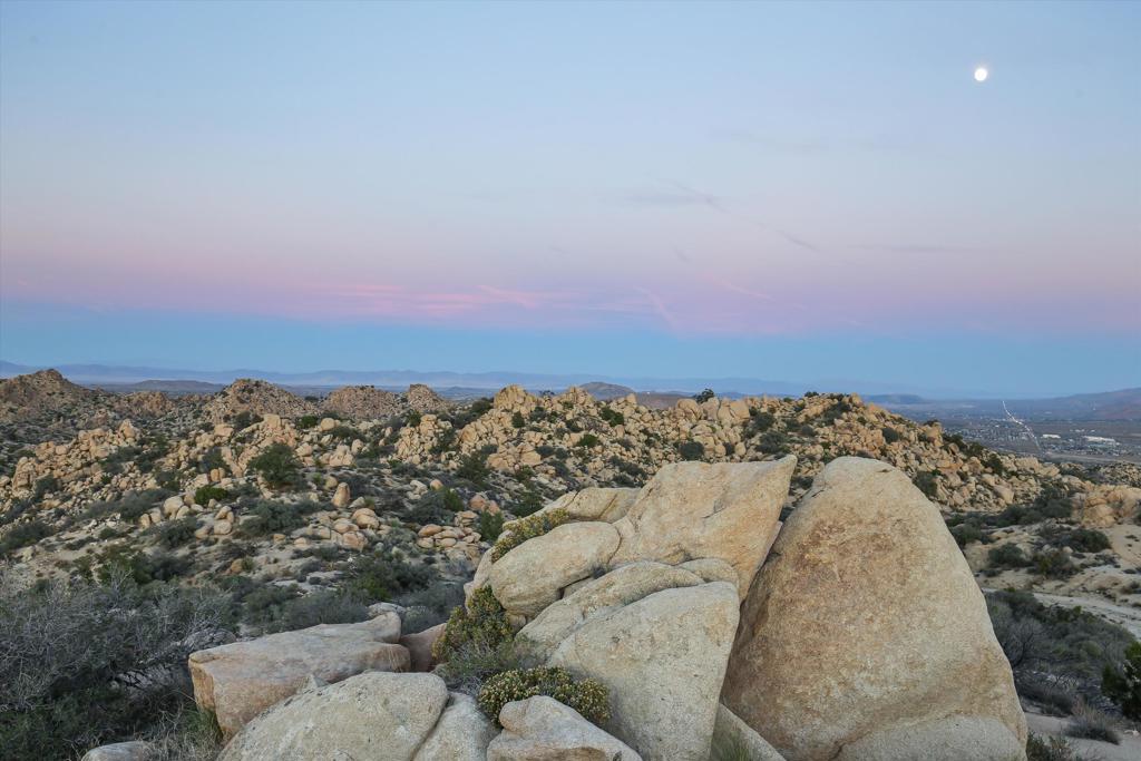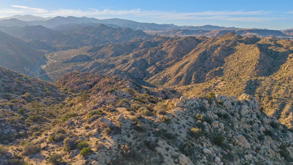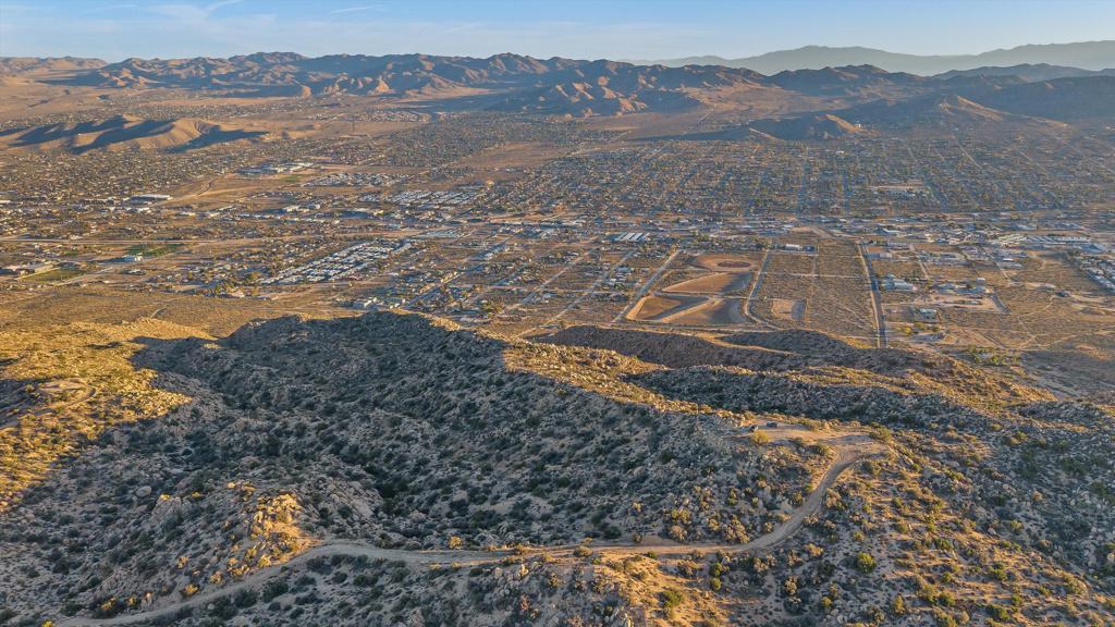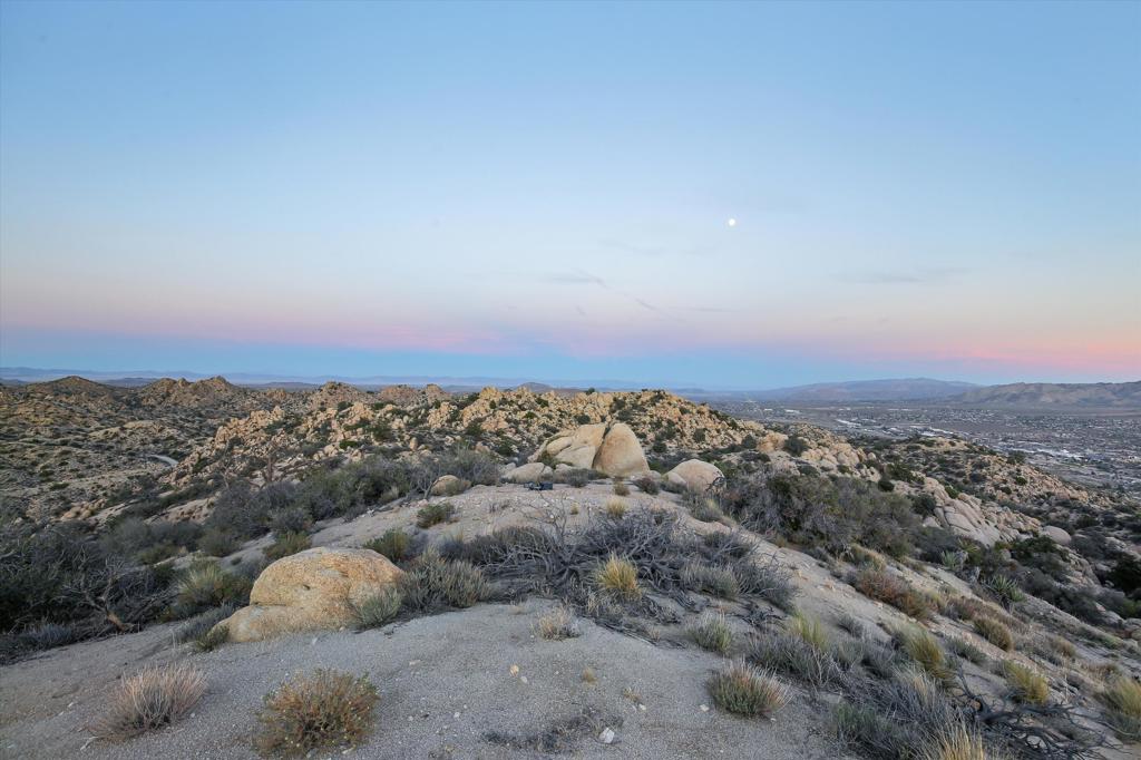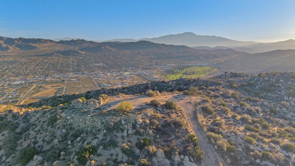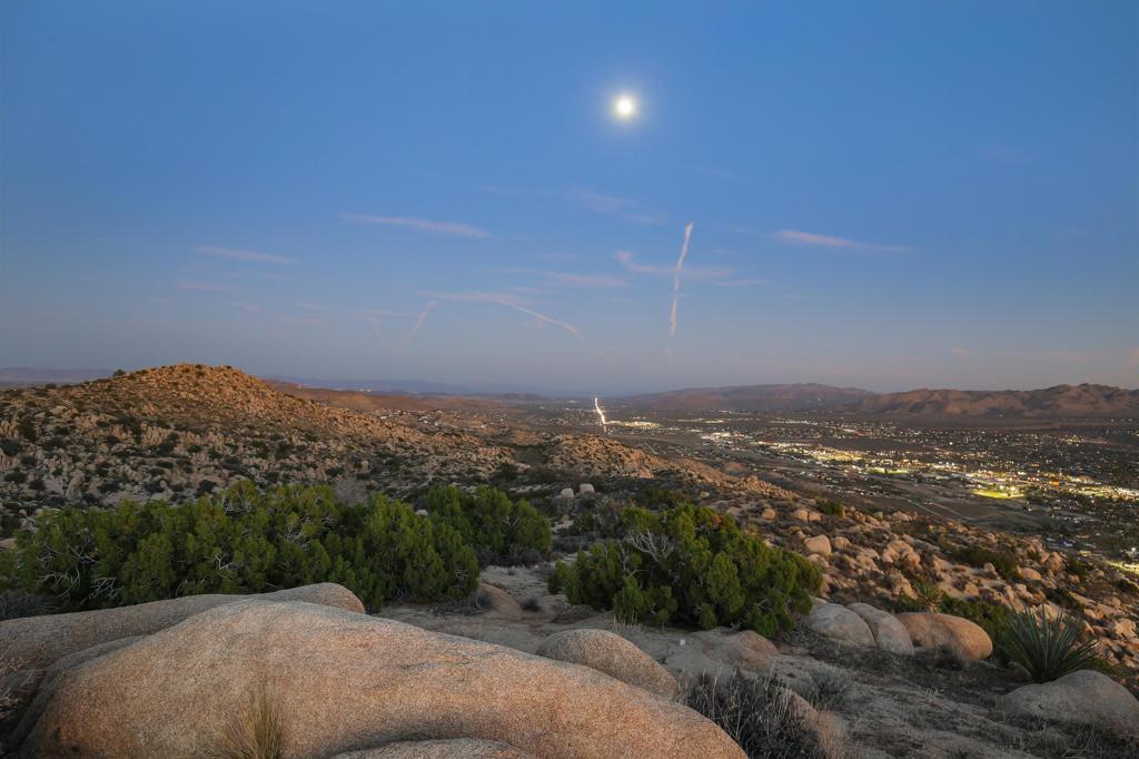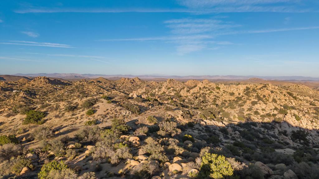 Eighty acres at the summit of Rock Reach, an almost surreal stretch of land where the entire desert opens up around you. The views are staggering in every direction. You can see the whole world from up here: Pioneertown, Landers, Twentynine Palms, Palm Springs, and the long spine of San Jacinto and San Gorgonio anchoring the horizon. Day or night, the landscape feels endless, with city lights in the distance, ridge lines rolling away for miles, and skies that feel close enough to touch.The property is covered in boulders. Enormous, sculptural, towering forms rising out of the ground and wrapping the site in a kind of natural monumentality. Between them are pockets of native flora including creosote, cholla, yucca, and juniper that create moments of green and texture that shift with the seasons and the light.Two building pads are already in place, with countless other options across the terrain. Everywhere you stand feels like its own world.What makes this land truly rare is the combination of scale, privacy, and ease. It feels remote and untouched, quiet and elevated, completely its own universe, yet it is minutes from town with simple access to groceries, gas, coffee, restaurants, and everything you actually need.A property like this comes along once in a lifetime, if ever. It's dramatic, cinematic, and intensely beautiful, one of those desert places that stays with you long after you leave.