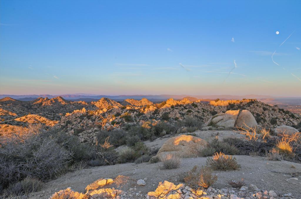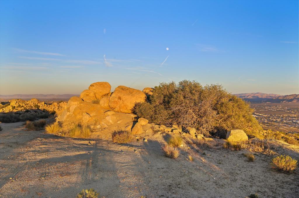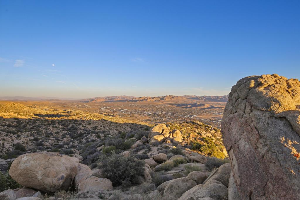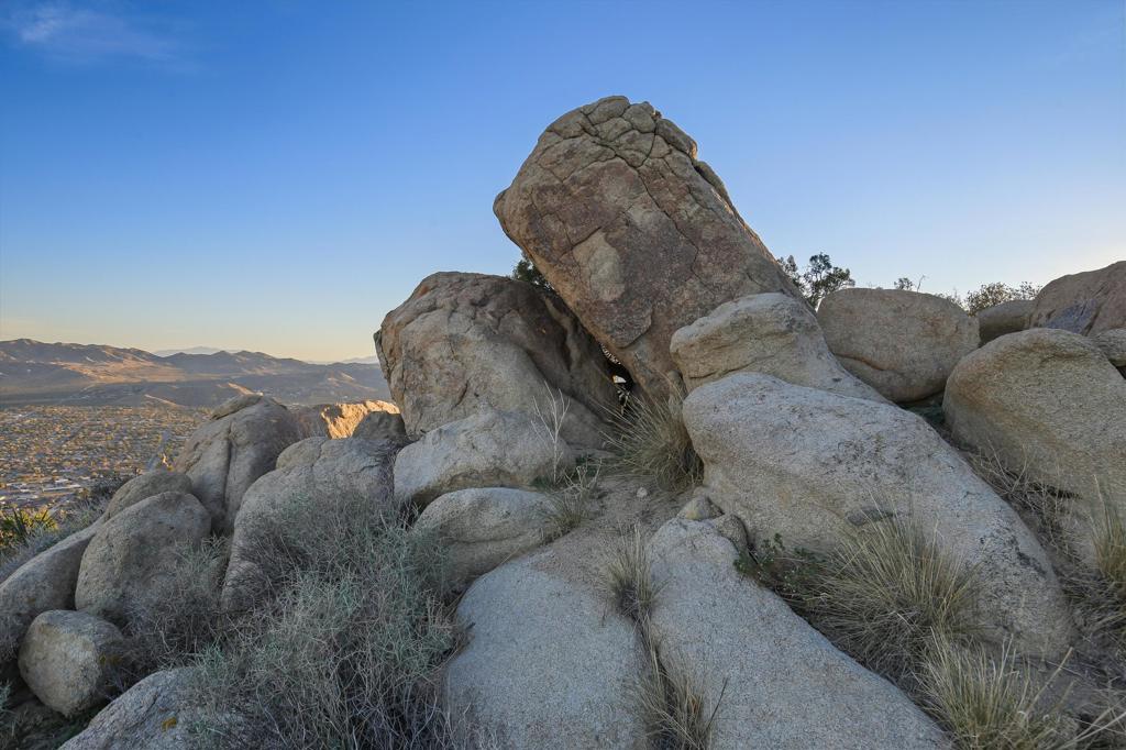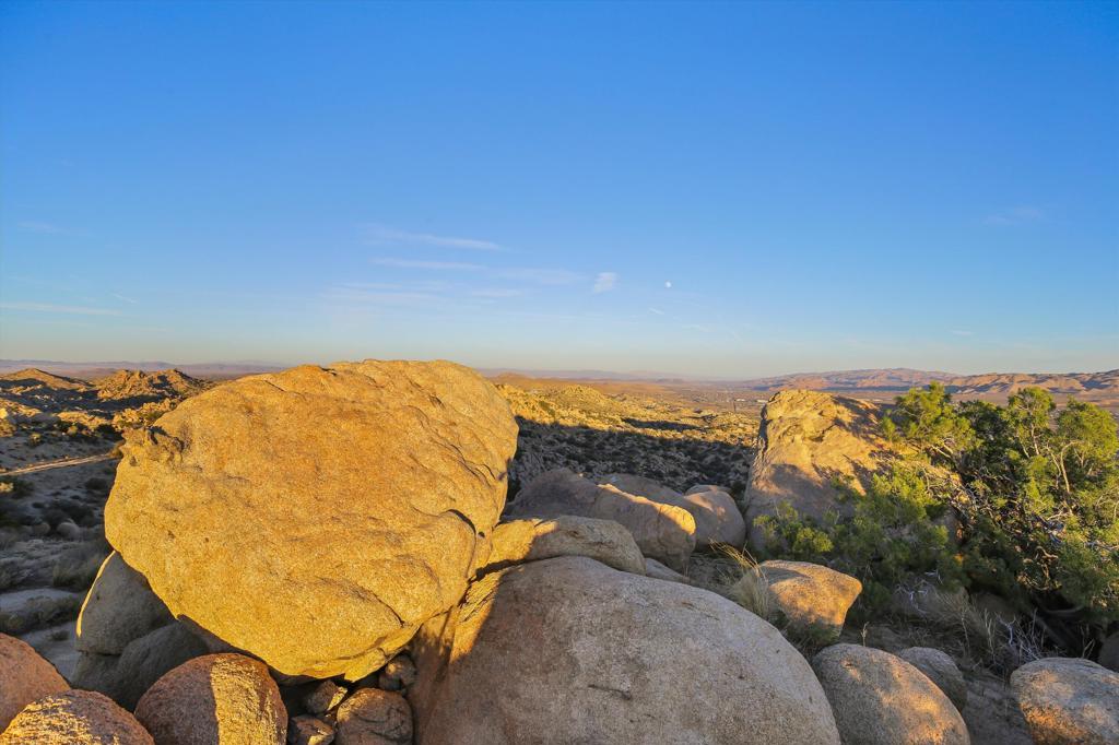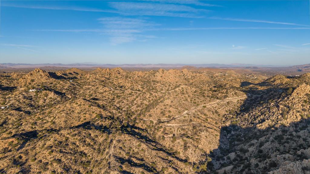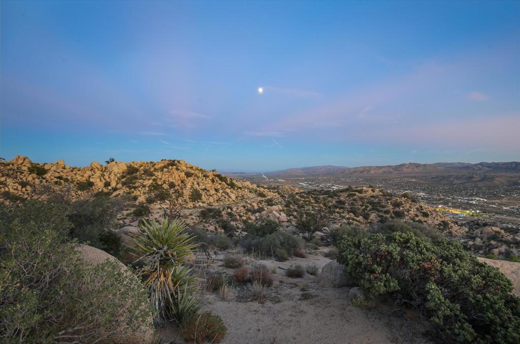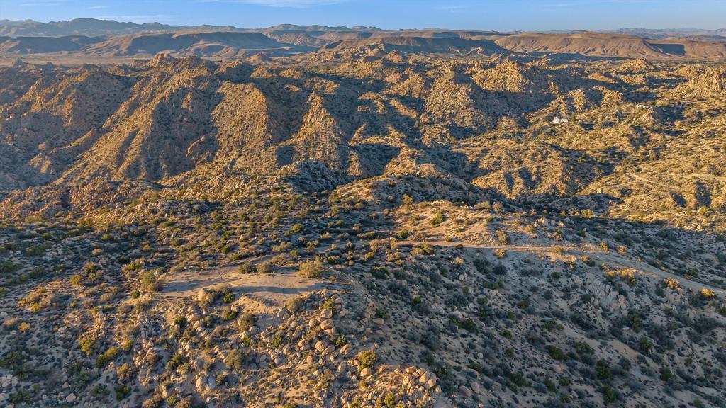 Eighty acres at the summit of Rock Reach, an almost surreal stretch of land where the entire desert opens up around you. The views are staggering in every direction. You can see the whole world from up here: Pioneertown, Landers, Twentynine Palms, Palm Springs, and the long spine of San Jacinto and San Gorgonio anchoring the horizon. Day or night, the landscape feels endless, with city lights in the distance, ridge lines rolling away for miles, and skies that feel close enough to touch.The property is covered in boulders. Enormous, sculptural, towering forms rising out of the ground and wrapping the site in a kind of natural monumentality. Between them are pockets of native flora including creosote, cholla, yucca, and juniper that create moments of green and texture that shift with the seasons and the light.Two building pads are already in place, with countless other options across the terrain. Everywhere you stand feels like its own world.What makes this land truly rare is the combination of scale, privacy, and ease. It feels remote and untouched, quiet and elevated, completely its own universe, yet it is minutes from town with simple access to groceries, gas, coffee, restaurants, and everything you actually need.A property like this comes along once in a lifetime, if ever. It's dramatic, cinematic, and intensely beautiful, one of those desert places that stays with you long after you leave.