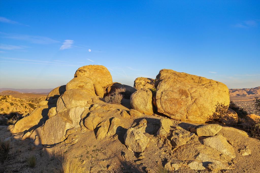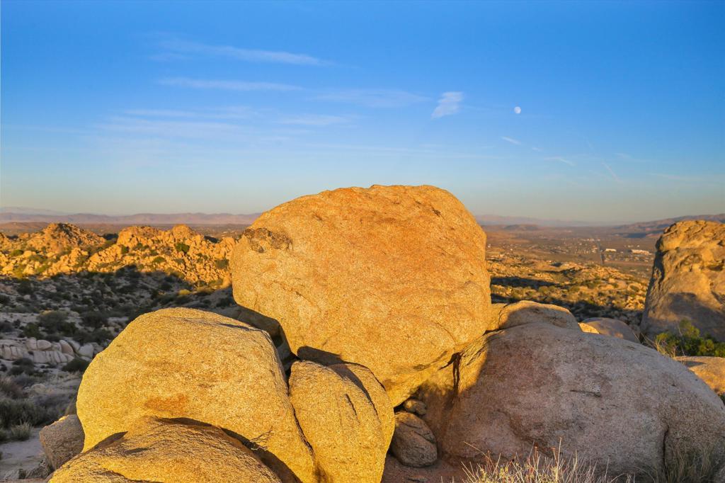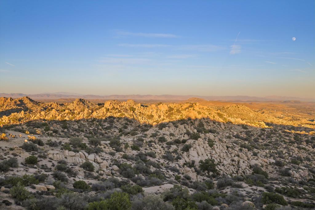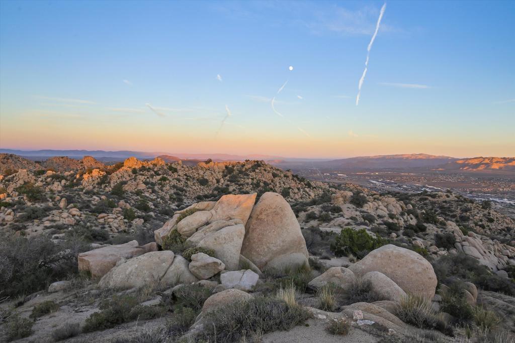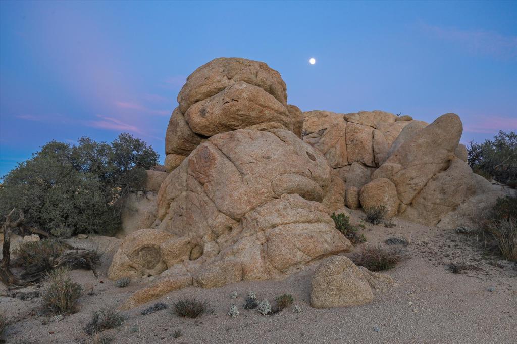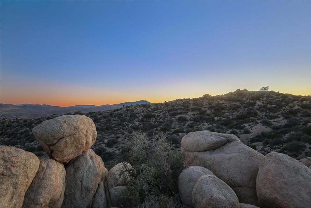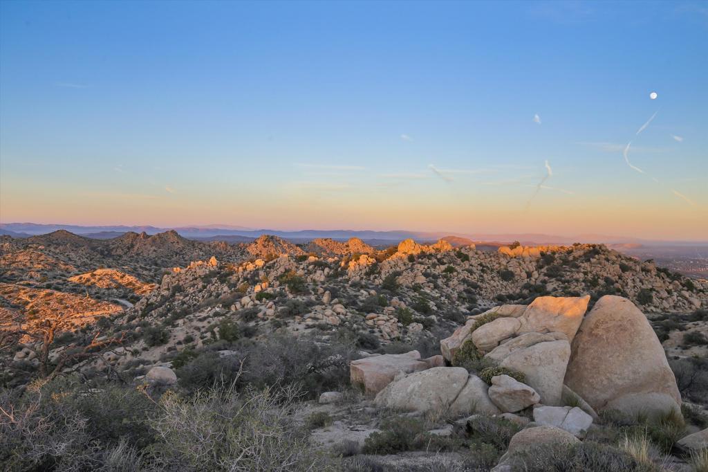Eighty acres at the summit of Rock Reach, an almost surreal stretch of land where the entire desert opens up around you. The views are staggering in every direction. You can see the whole world from up here: Pioneertown, Landers, Twentynine Palms, Palm Springs, and the long spine of San Jacinto and San Gorgonio anchoring the horizon. Day or night, the landscape feels endless, with city lights in the distance, ridge lines rolling away for miles, and skies that feel close enough to touch.The property is covered in boulders. Enormous, sculptural, towering forms rising out of the ground and wrapping the site in a kind of natural monumentality. Between them are pockets of native flora including creosote, cholla, yucca, and juniper that create moments of green and texture that shift with the seasons and the light.Two building pads are already in place, with countless other options across the terrain. Everywhere you stand feels like its own world.What makes this land truly rare is the combination of scale, privacy, and ease. It feels remote and untouched, quiet and elevated, completely its own universe, yet it is minutes from town with simple access to groceries, gas, coffee, restaurants, and everything you actually need.A property like this comes along once in a lifetime, if ever. It's dramatic, cinematic, and intensely beautiful, one of those desert places that stays with you long after you leave.