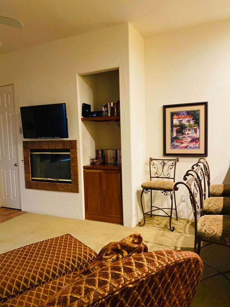 Ready for immediate occupancy. Perfect for single person or couple. Welcome home to Casitas Las Rosas. Great condo located across from Old Town La Quinta. Beautiful one bedroom, one bath situated on the first floor with easy access to pool and spa. fully furnished. Walk in closet is over-sized. The kitchen is well appointed with stove, microwave, fridge/freezer, granite counter tops. Bath is generous in size with tub/shower combo, granite counter tops. The laundry closet has stacked washer and dryer. Water, trash, internet, cable TV included. Ideally located in the heart of La Quinta. Super location and access to pool.
