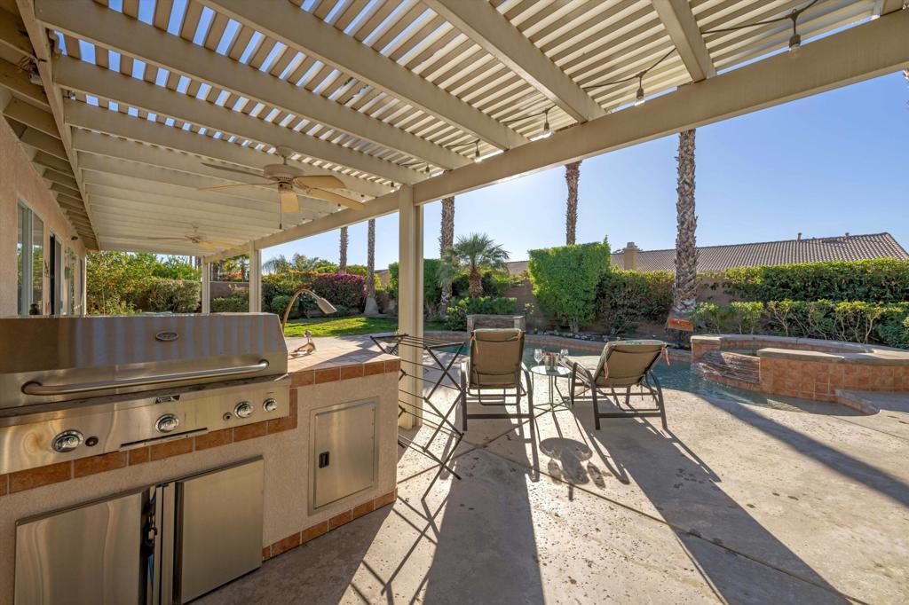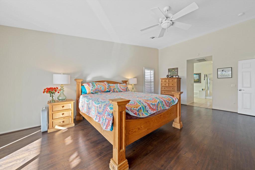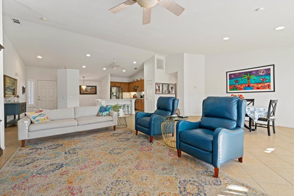 Situated behind the gates of Las Brisas North, this well-appointed four-bedroom, three-bath residence offers a highly sought-after floor plan designed for both comfort and flexibility. The main residence features three bedrooms and two baths, complemented by a private one-bedroom, one-bath guest house with a separate entrance--ideal for extended family, visitors, or a home office. The property includes a three-car garage with RV parking access and enjoys prime southern exposure. Dual HVAC systems were replaced approximately four and a half years ago, while the pool heater and filter have been updated within the last two years. Additional features include window shutters throughout and a spacious great room layout anchored by a modern kitchen with stainless steel appliances and tasteful finishes. The primary suite is thoughtfully positioned on its own wing of the home, offering privacy and separation. The backyard is designed for entertaining, highlighted by a Pebble Tec pool and spa with a waterfall feature. Conveniently located less than ten minutes from major shopping, dining, and retail destinations. Select guest bedroom and casita images reflect virtual staging options.