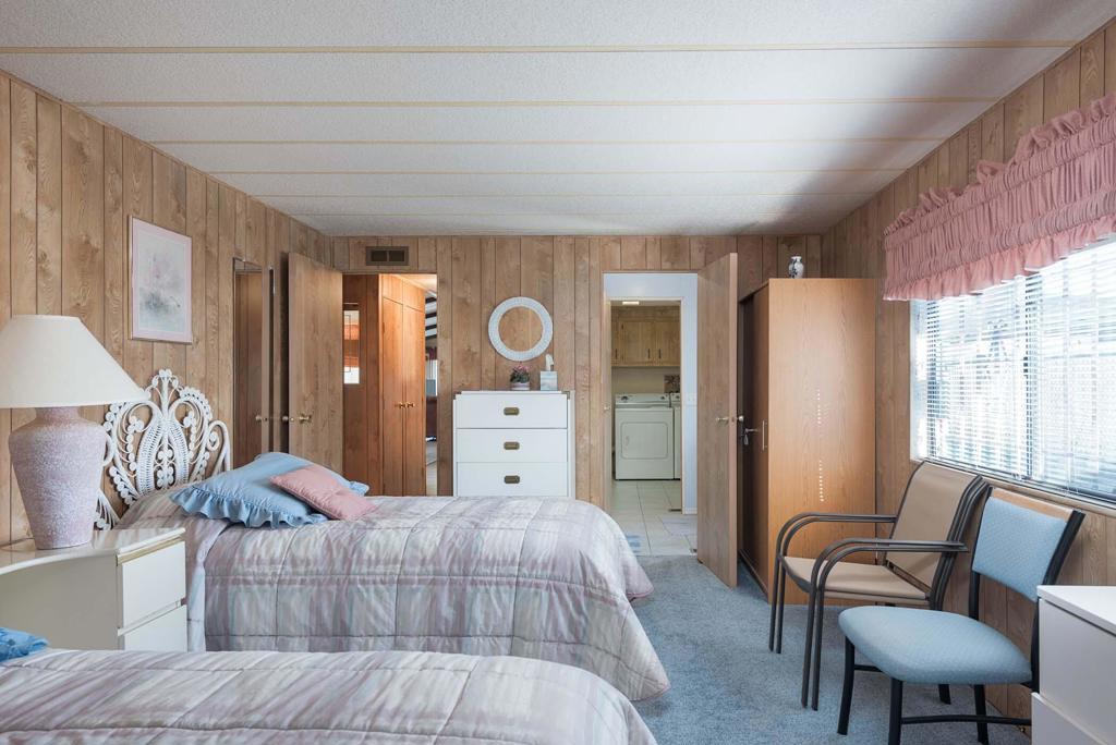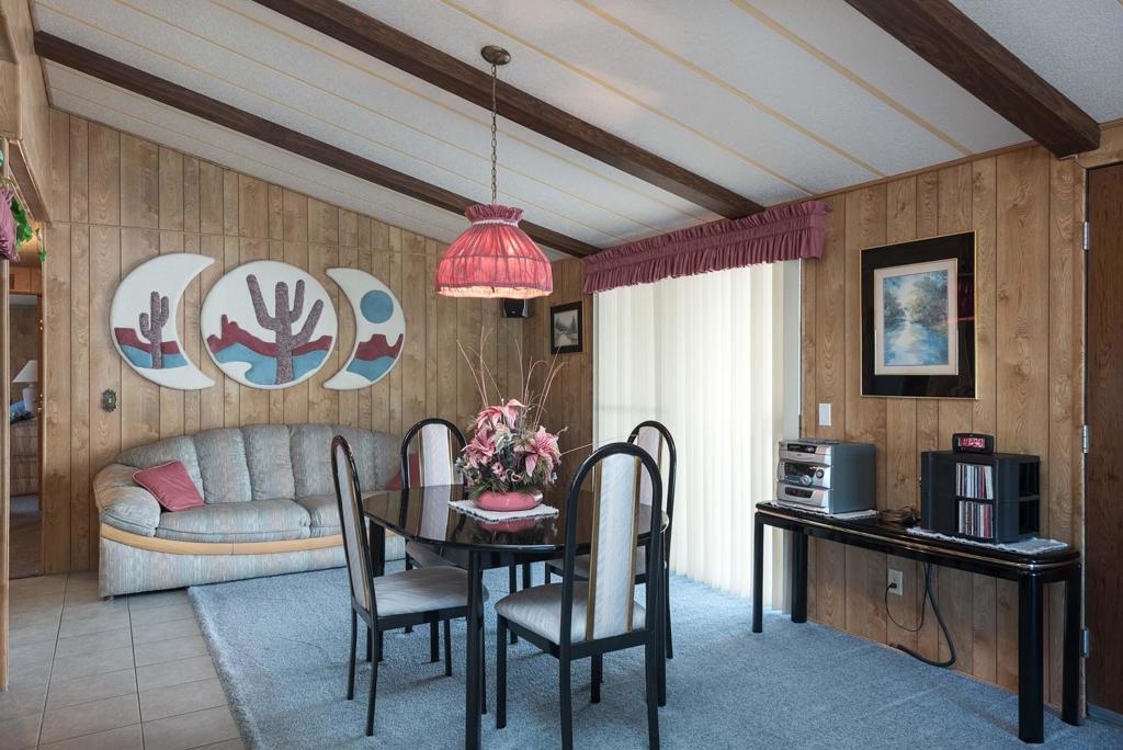 This well maintained furnished Mobile home is move in ready. It is located on an interior lot near the Community Pool/Spa and close to Clubhouse for ease of use for social events and activities. The 2 Bedroom 1 3/4 Bath home has been well kept and boasts two large front windows for tons of natural light. The front Living Room is open to the Dining Area and Kitchen. The laundry room is oversized and has extra storage, a full sized Washer and Dryer along with an additional Refrigerator. The Guest Bedroom has twin beds and its own En Suite with Step in Shower. The Primary bedroom is large with three section closet along with a nice sized bathroom area. All Appliances are included in the sale along with an extra wine cooler. The tandem carport will fit two or three cars and has a storage unit onsite. The front patio area will be great for morning coffee or evening beverages with friends and family. The Canyon is centrally located in the Valley and has easy Freeway access on Gene Autry Trail or Date Palm Dr. We are near shopping, entertainment, PS Int'l Airport and 10-12 Min. to Downtown Palm Springs! The Canyon features only Full-Time Residence or Second Homes. We have wonderful park like greenbelt grounds with Tennis & Pickleball. Our clubhouse boasts an upgraded Banquet Hall, Gym, Card Room and Library along with 4 Enclosed Heated and Cooled Shuffleboard Lanes, Two pools and a Spa. You will need to qualify as a resident with 3 times space rent $935 = $2805 along with a FICO score of 750. One domestic animal of 20 lbs unless it is a Service Dog. The Canyon is the place to be for 55+ Adult Lifestyle Living. Make an OFFER Today!!