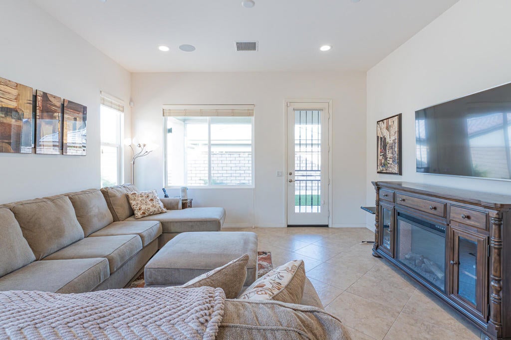 Welcome to 42897 Cusino Ct, a stunning desert retreat tucked at the end of a quiet cul-de-sac on an oversized 12,000 sq. ft. lot in a desirable 55+ community. This spacious home offers two living rooms and a versatile flex space that can serve as a bedroom, office, or hobby room. The kitchen is designed with both style and function in mind, featuring granite countertops, a central island with bar seating, and an open flow to the dining and living areas--ideal for entertaining. The primary suite is a private retreat with a walk-in closet, double vanity, soaking tub, and walk-in shower. Outdoor living is unmatched with two covered patios, custom misting systems, turf landscaping, and a resort-style custom pool with overflow spa, all framed by sweeping north and west-facing views that capture the desert sky and sunsets. A convenient laundry room with utility sink completes the home, which is offered fully furnished and move-in ready for your next desert chapter.Additional information: Seller states that an assumable VA loan may be available with an approximate balance of $217,000 at a 2.75% interest rate. Buyers are advised to verify eligibility and terms directly with the lender.